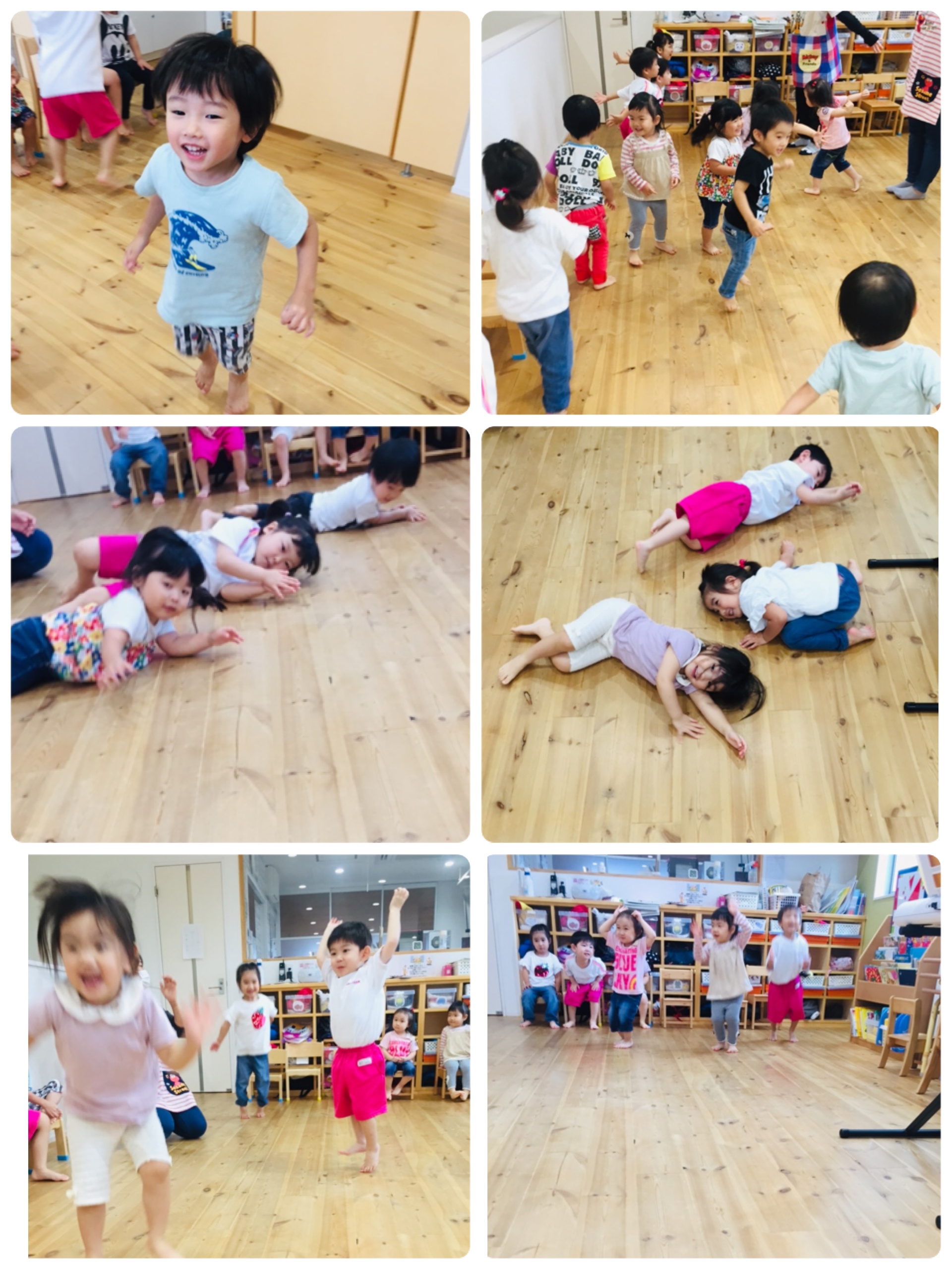 2階のつき組・あおぞら組・にじ組さんはリトミックをして、動物レース☆彡