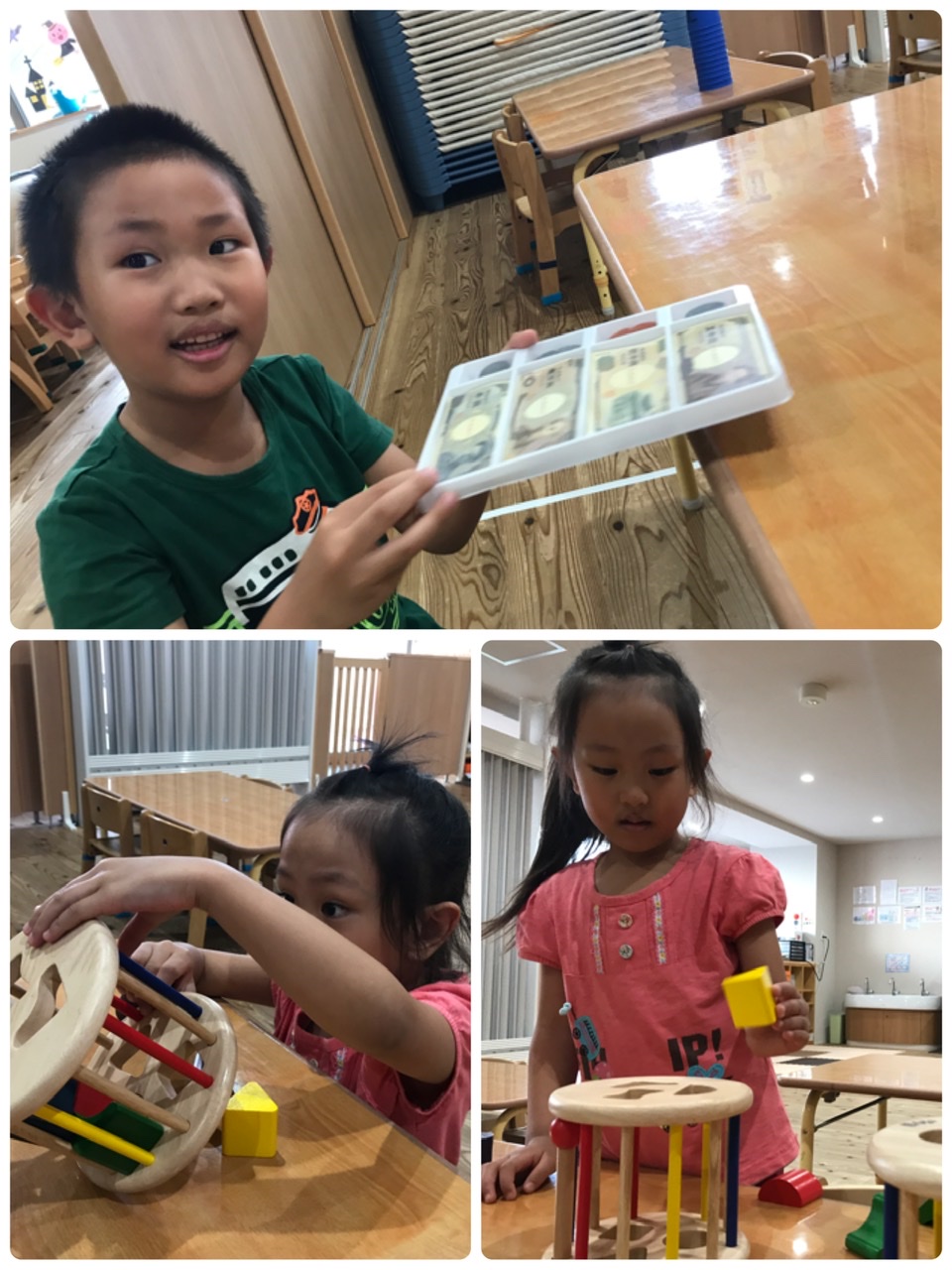 遅れて登園したお友達は、お部屋の中でお買い物ごっこをしていました!!