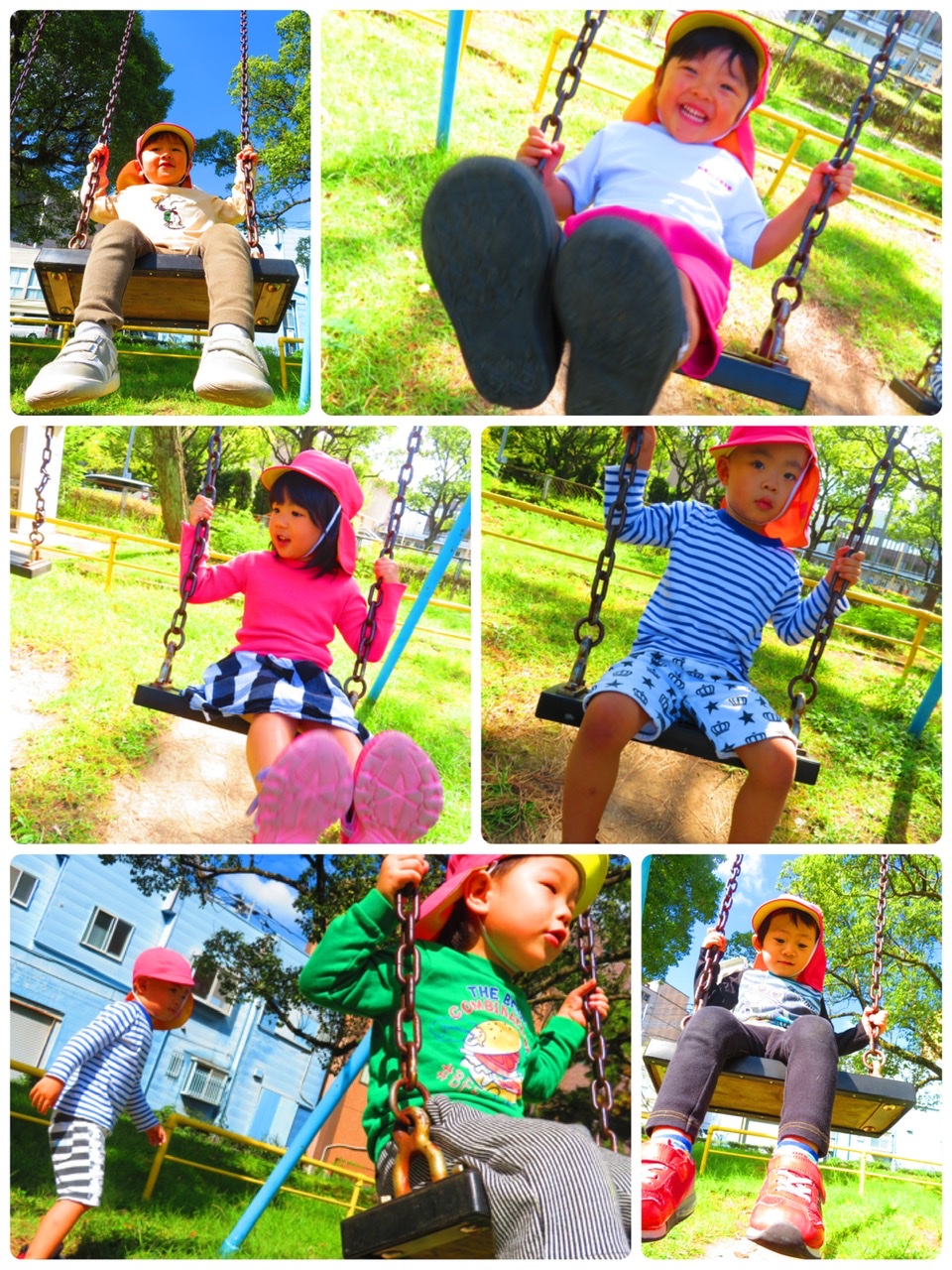 ブランコに乗っているお友達を押してあげるお友達もいましたよ!☆
