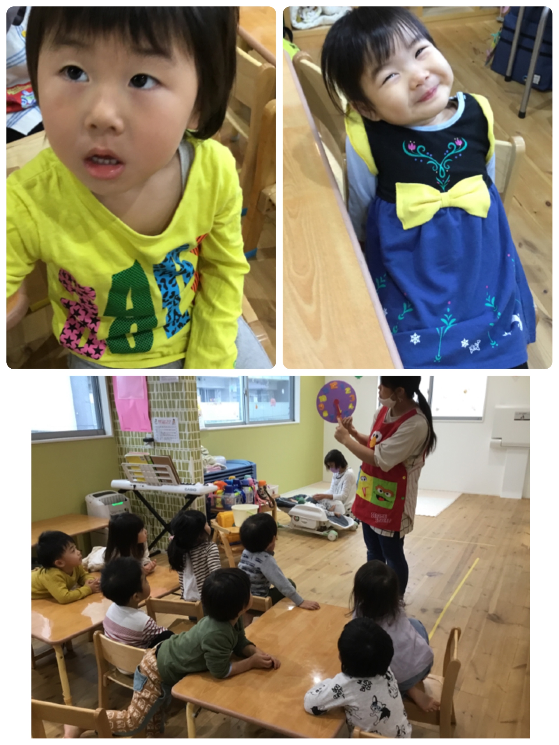 鍵盤ハーモニカを弾いてみたり、シール貼りをしたり、、、
