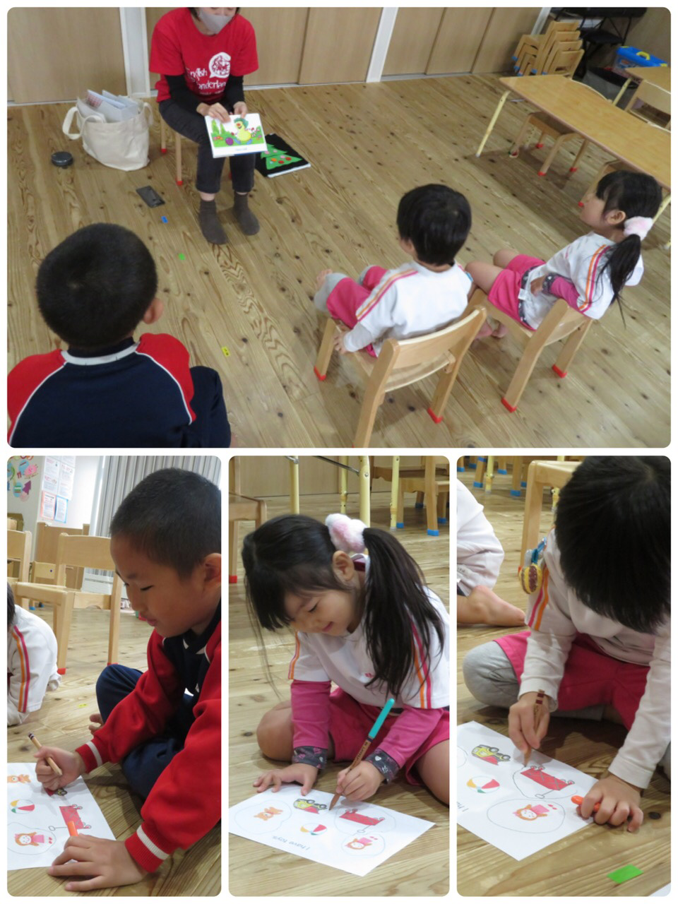 あおぞら、にじ、ひかり組さんは、英語教室でした!!みんな真似っこが上手でしたよ!