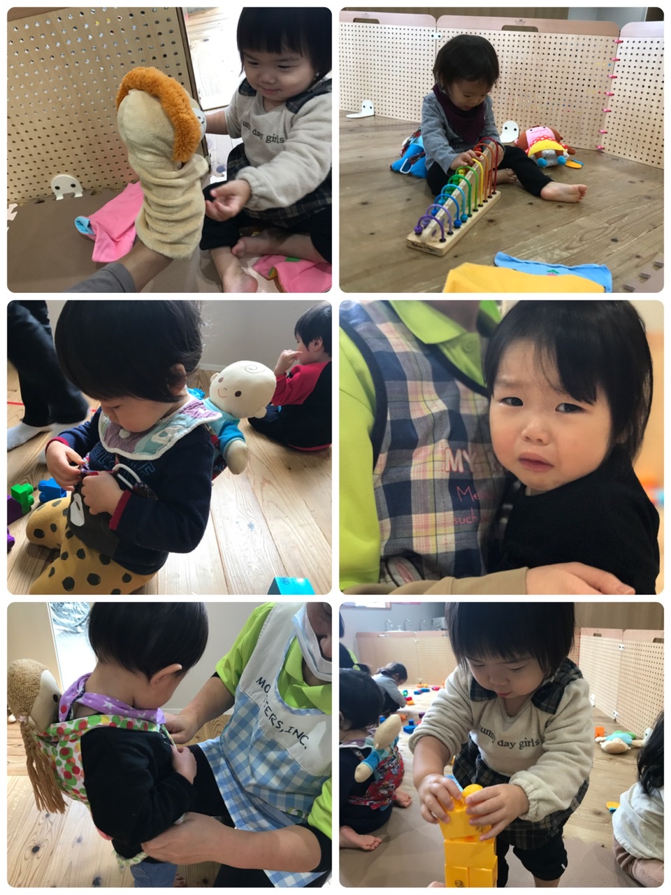その後は、お人形やブロックで遊びました!!お兄ちゃん気分になって、お人形をおんぶする子がいました!!♡