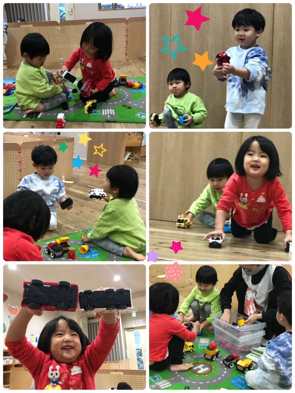 今日は四人のお友だちと一緒に新しい車のおもちゃで遊びました! 救急車や消防車などなど、、いろんなはたらくくるまになりきって遊んでいました(*^▽^*) ご飯前は先生が絵本を読み聞かせてくれました! 今日の給食もとっても美味しかったねっ♡