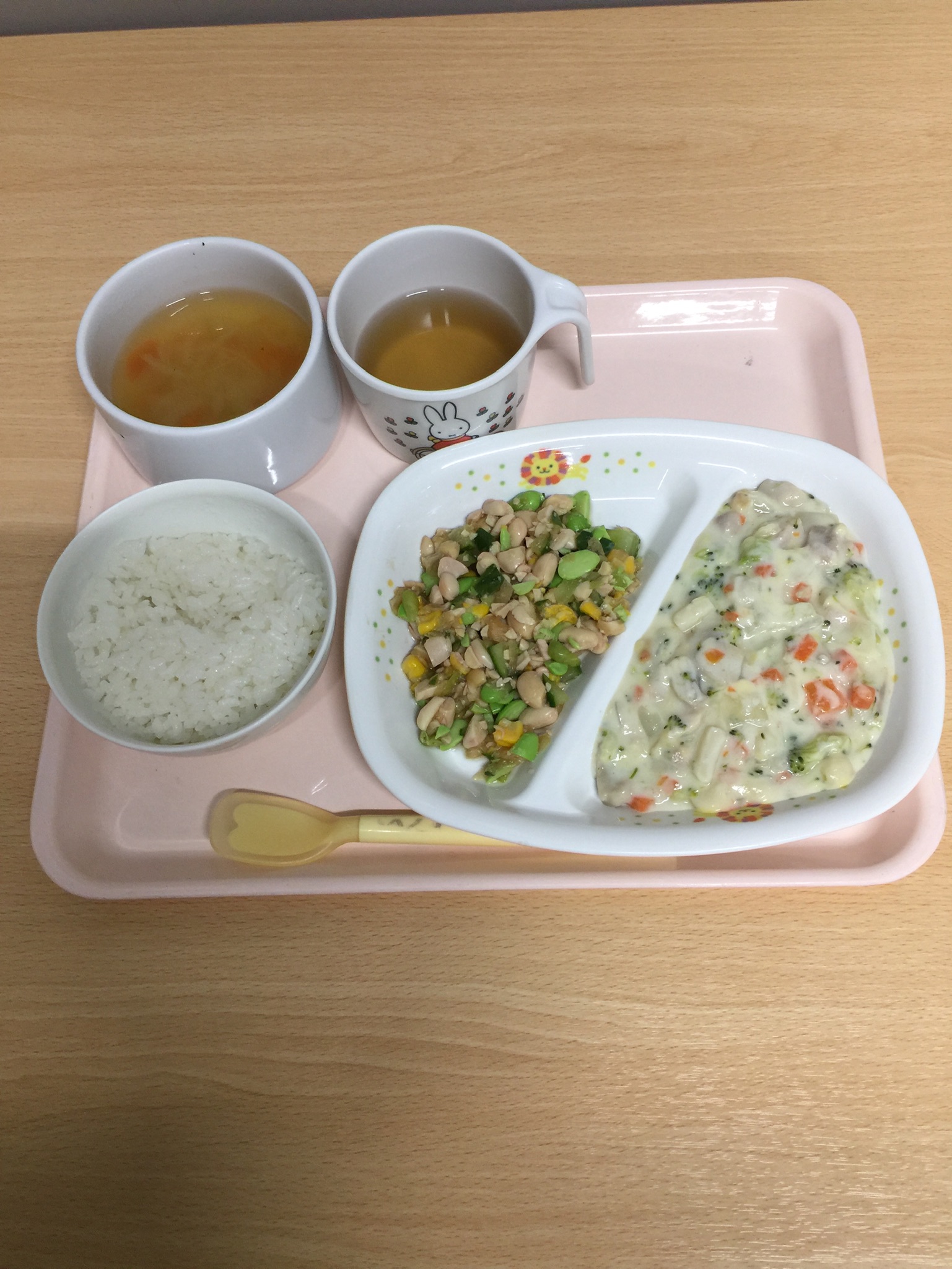 今日はどのクラスも制作を行いました★ みんな集中しています(*^^*) みんなで楽しくのりでぺったん出来ました♪ うさぎ組、ぱんだ組さんはオニの制作、、怖い鬼を想像して泣いちゃう場面も(>_<) もうすぐ節分ですね(^^♪四季のいろ保育園には優しい鬼さんが来ると良いですね(*^-^*) 今日のお給食。 今日もおいしいお給食をモリモリ食べました!! 明日は何の楽しい事が待ってるかな(#^^#)