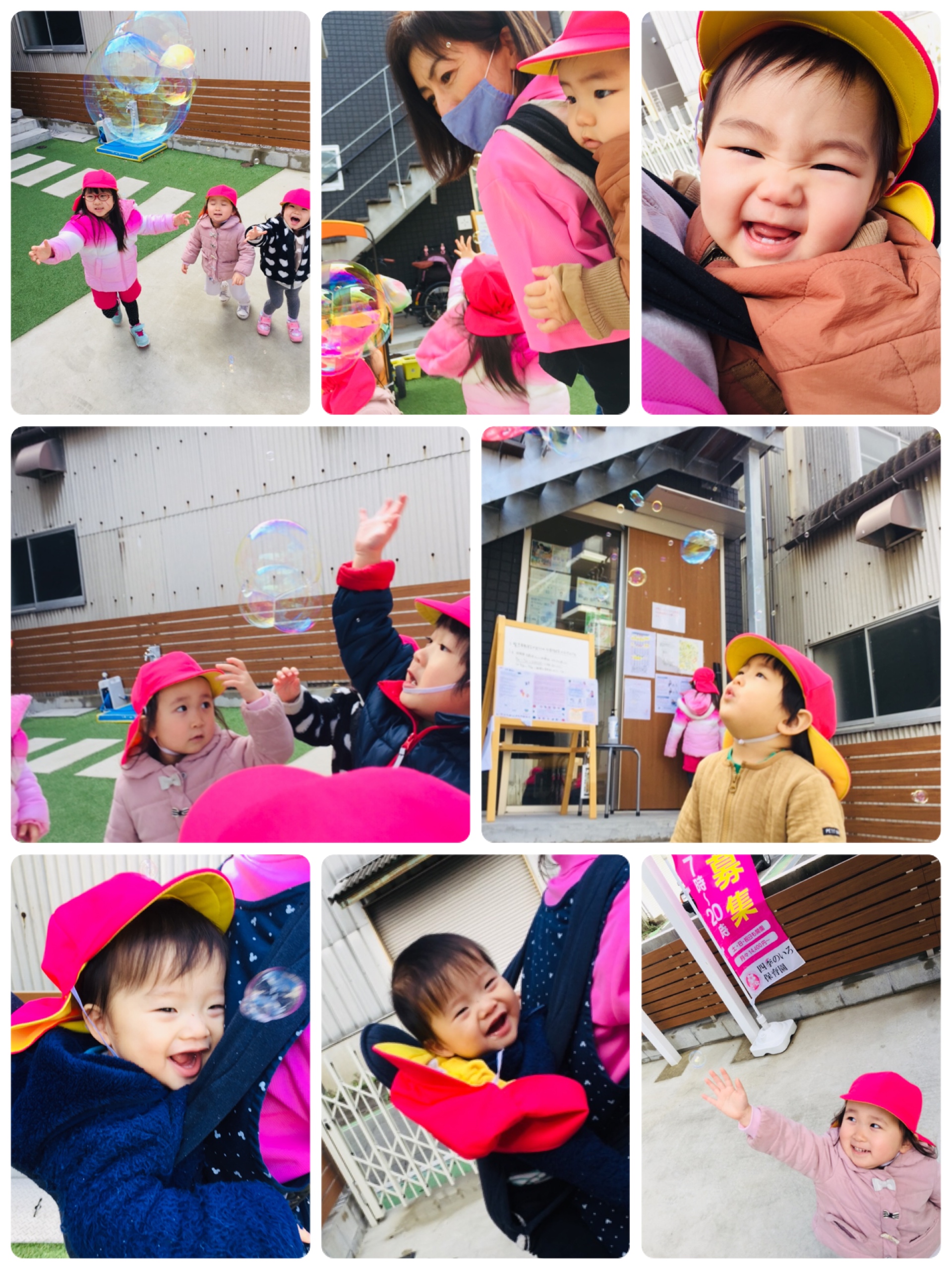 おひさま組さんもシャボン玉を不思議そうにみたり、