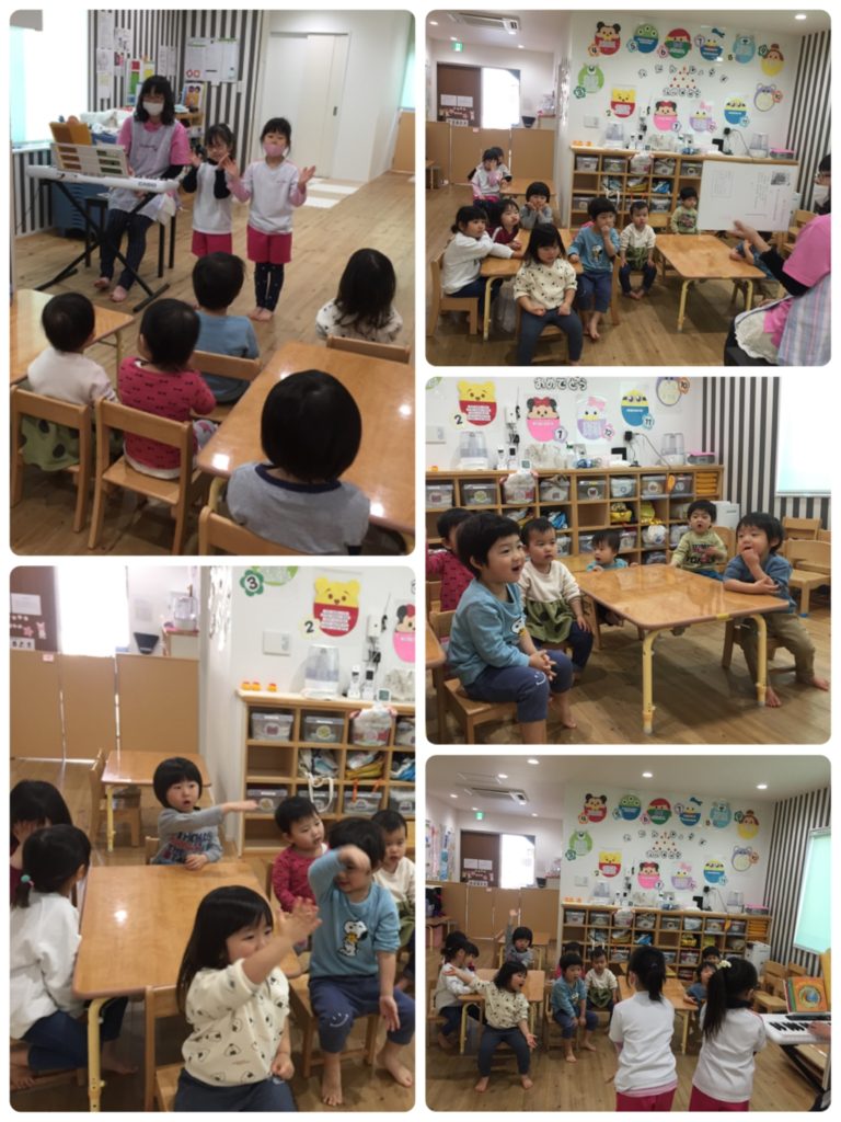 にじ、ひかり組のお姉さん方に朝のご挨拶をしてもらって