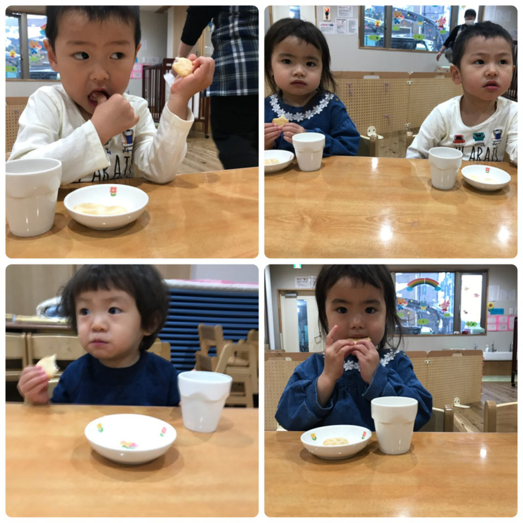 登園したら、まずは朝のおやつ!