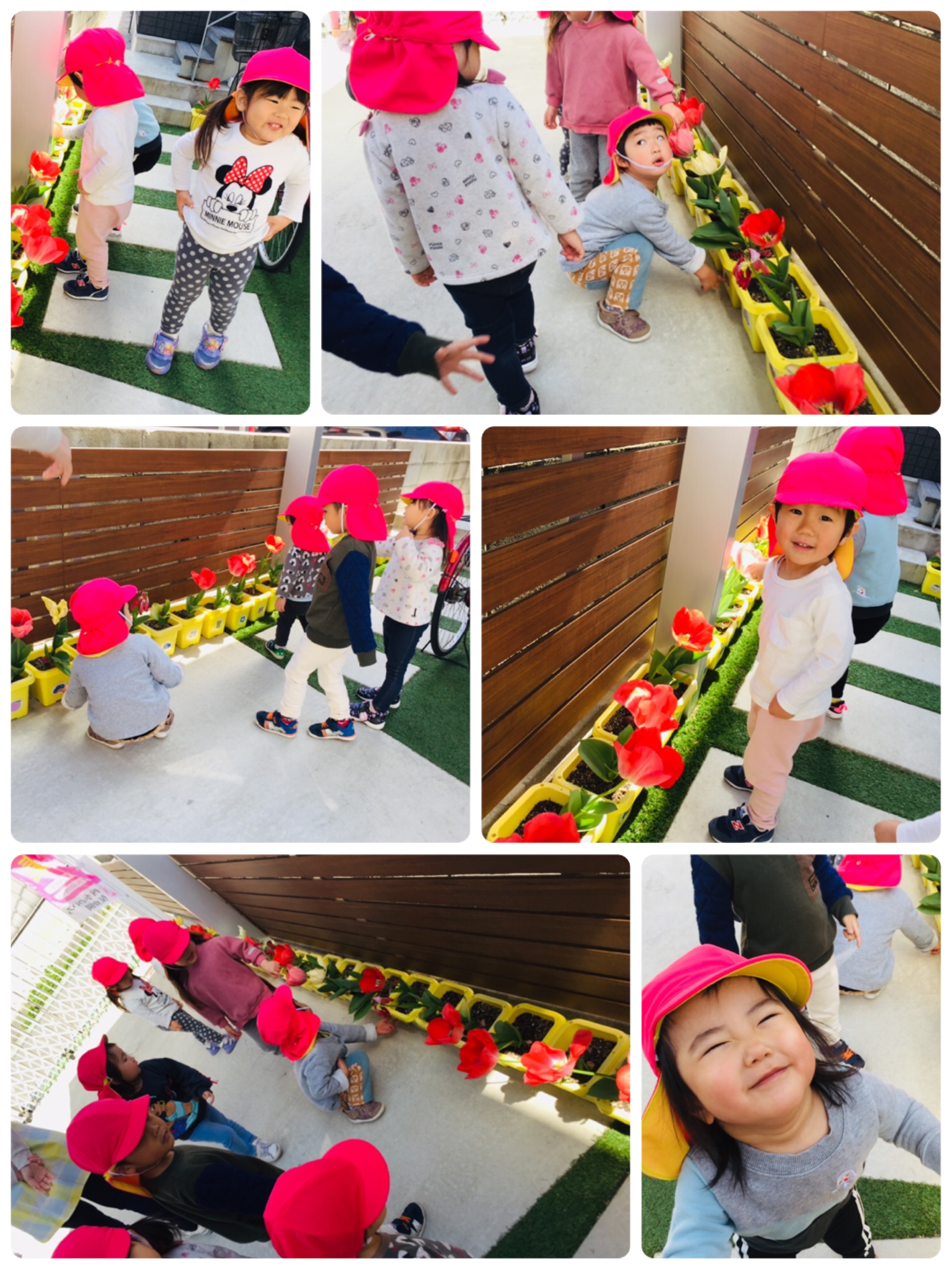 みんなチューリップに興味津々です( *´艸`)