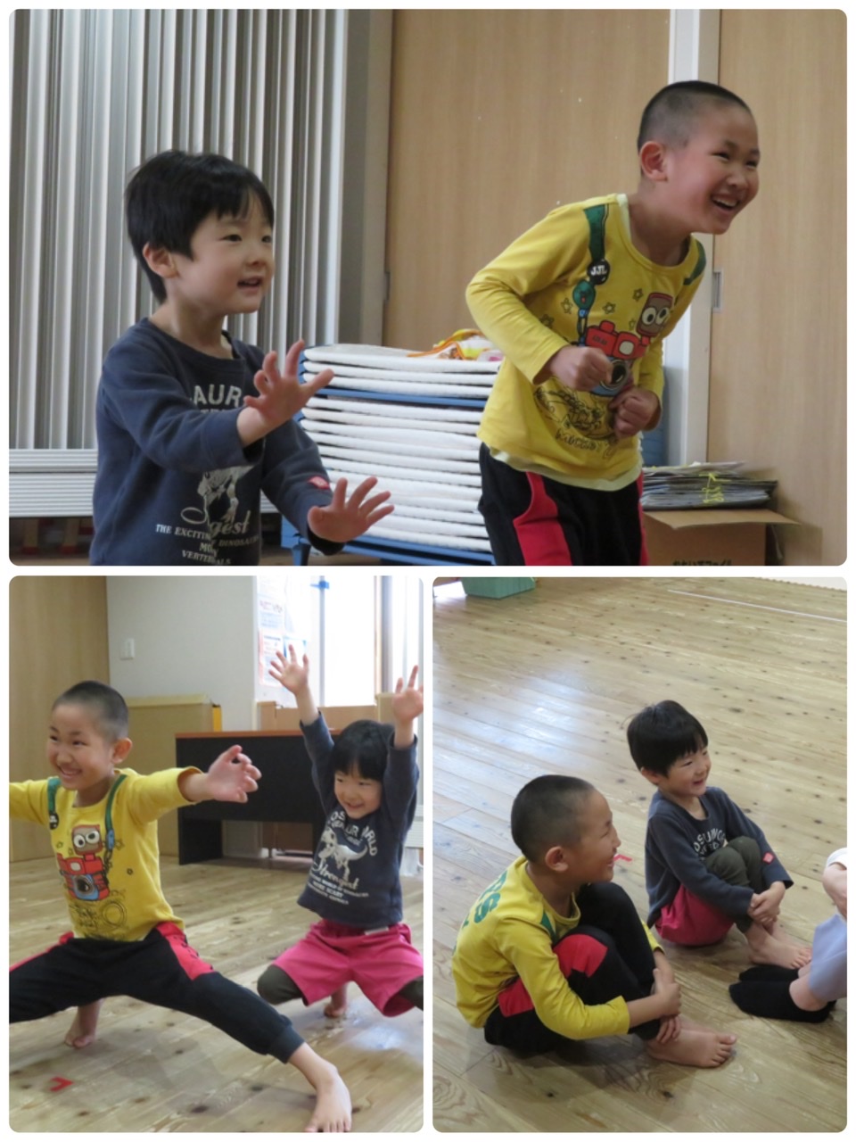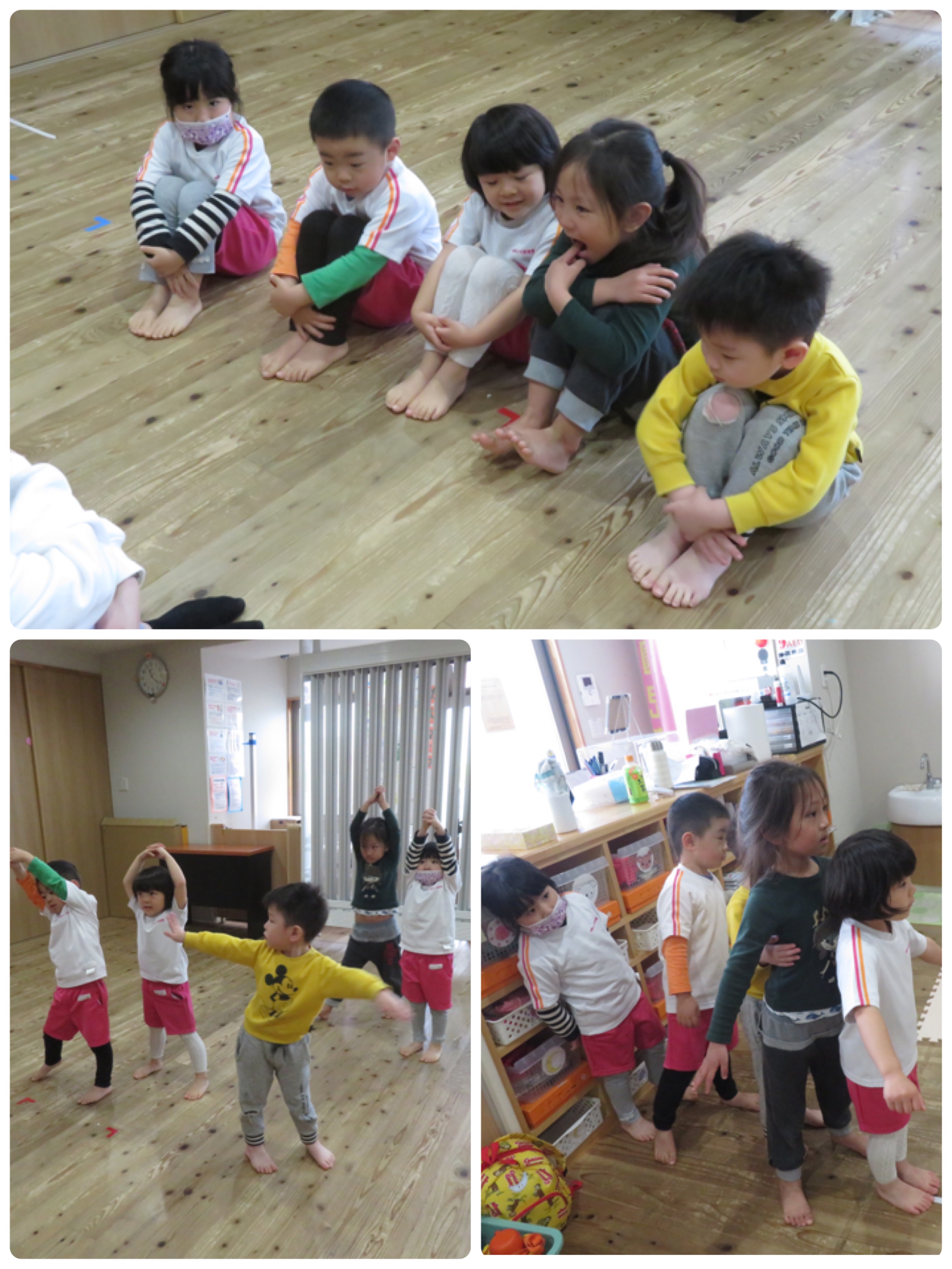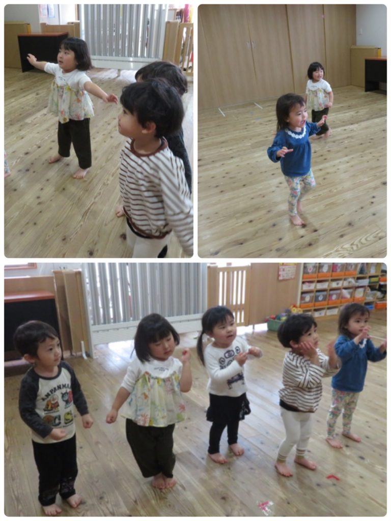 お絵かき、粘土の後には、つき、あおぞら、にじ、ひかり組さんはダンス教室がありました!