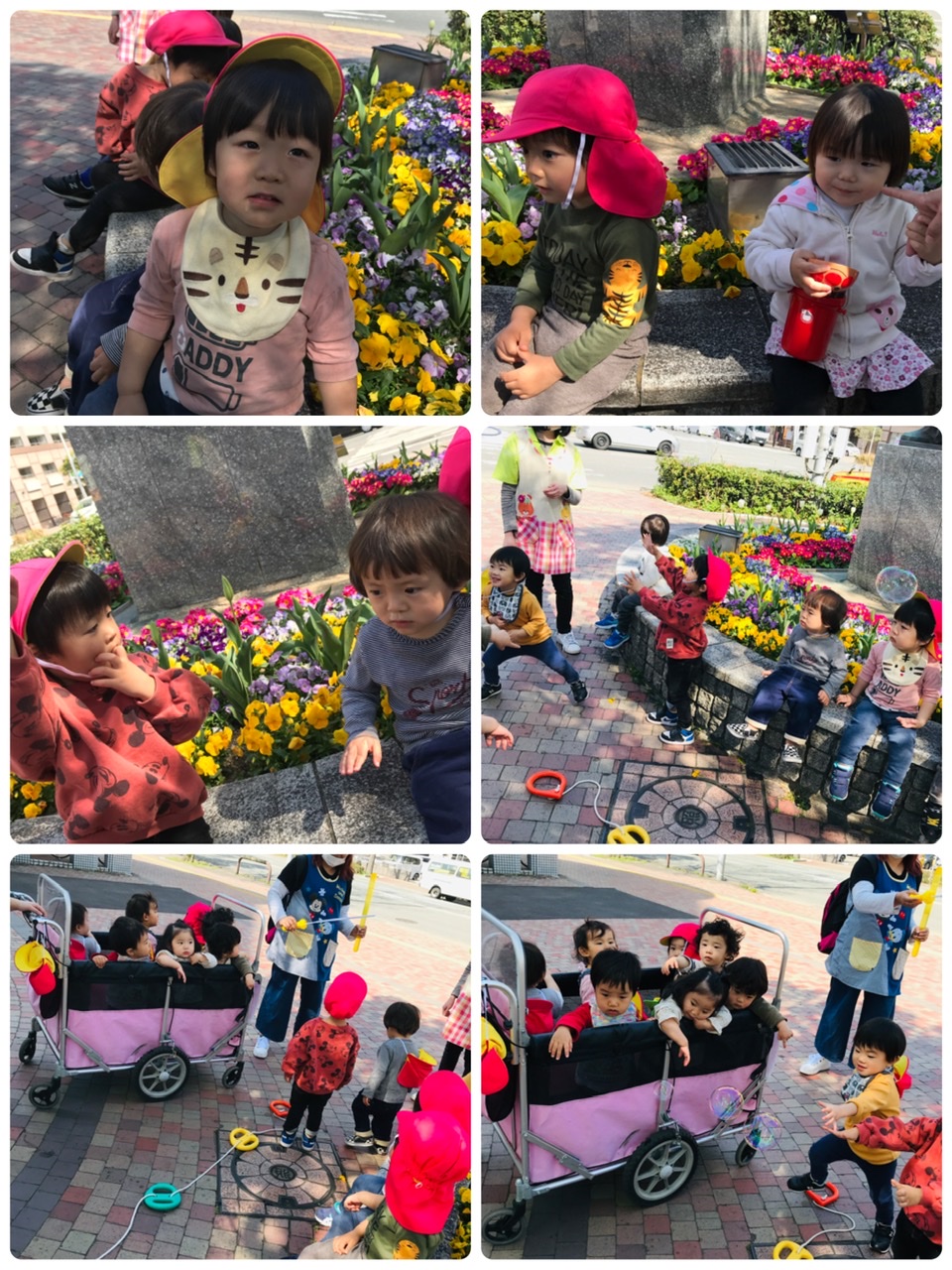 こんにちは!博多園です♫ 今日、おひさま、ほし組さんはお散歩に行きました! まずは、交番近くの花壇で一休み シャボン玉も見れてとても楽しかったねー! つき、あおぞら、にじ、ひかり組のお友達は粘土とお絵かきをしました! それぞれ、好きな物を選んでカキカキ、コネコネ楽しいー♬ お絵かき、粘土の後には、つき、あおぞら、にじ、ひかり組さんはダンス教室がありました! それぞれ、曲に合わせて1.2.1.2 頑張れー! 今日もたくさん、遊んで楽しかったね!