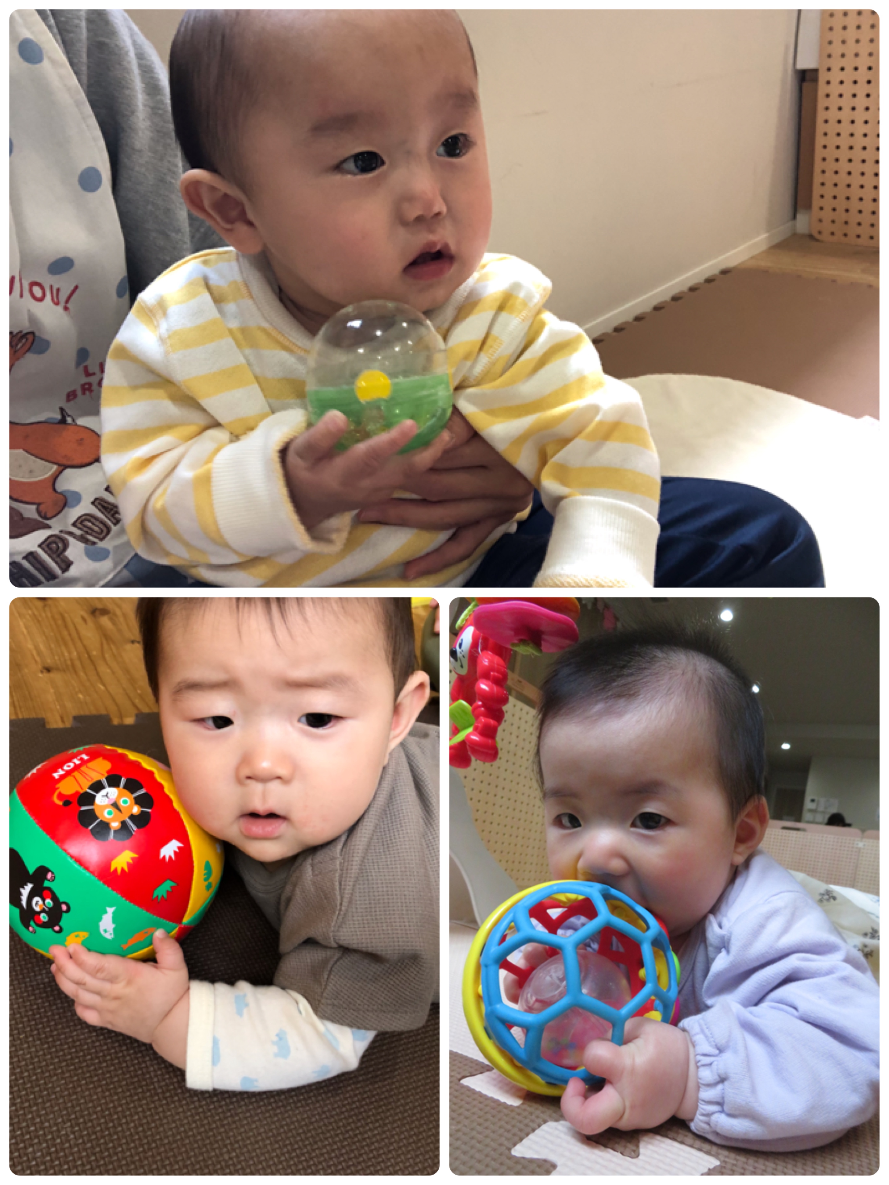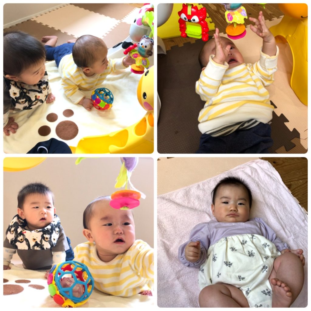 おひさま組さん先生達とたくさん触れ合いながらおもちゃで遊びました。