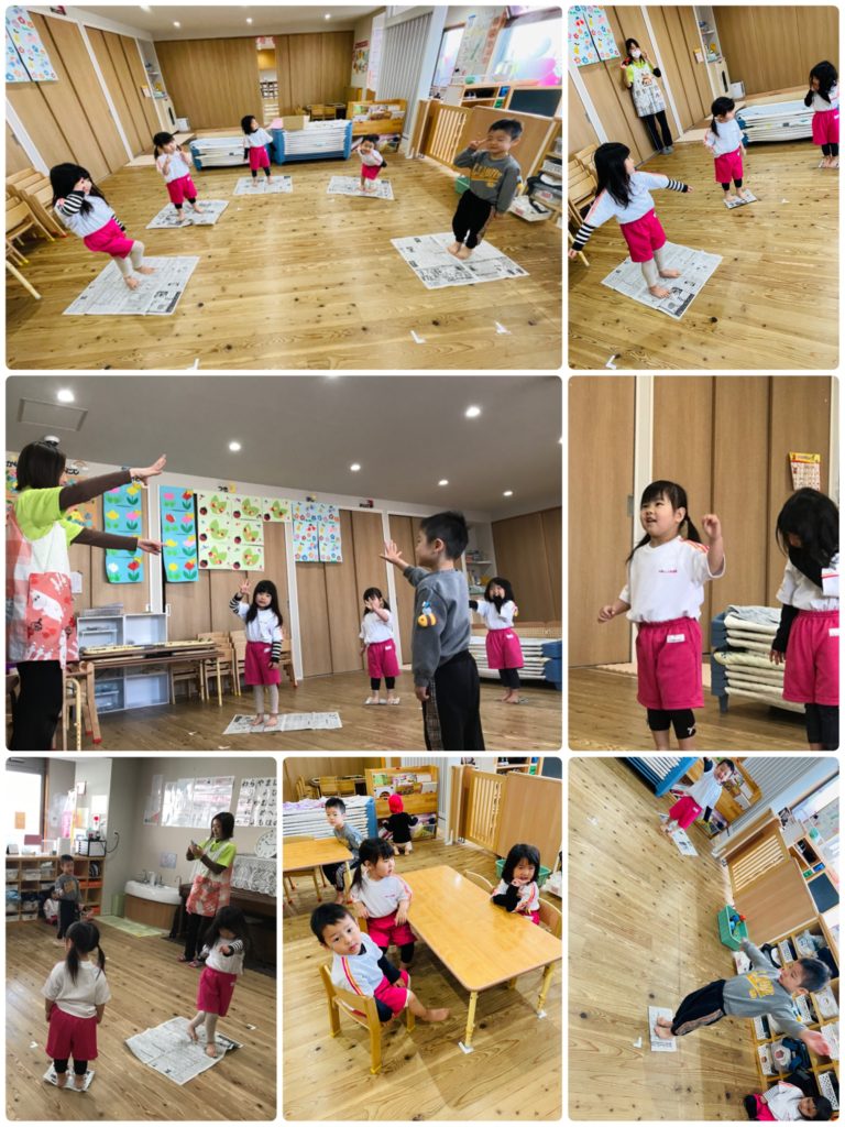 今日は新聞紙を使って遊びました(^^)