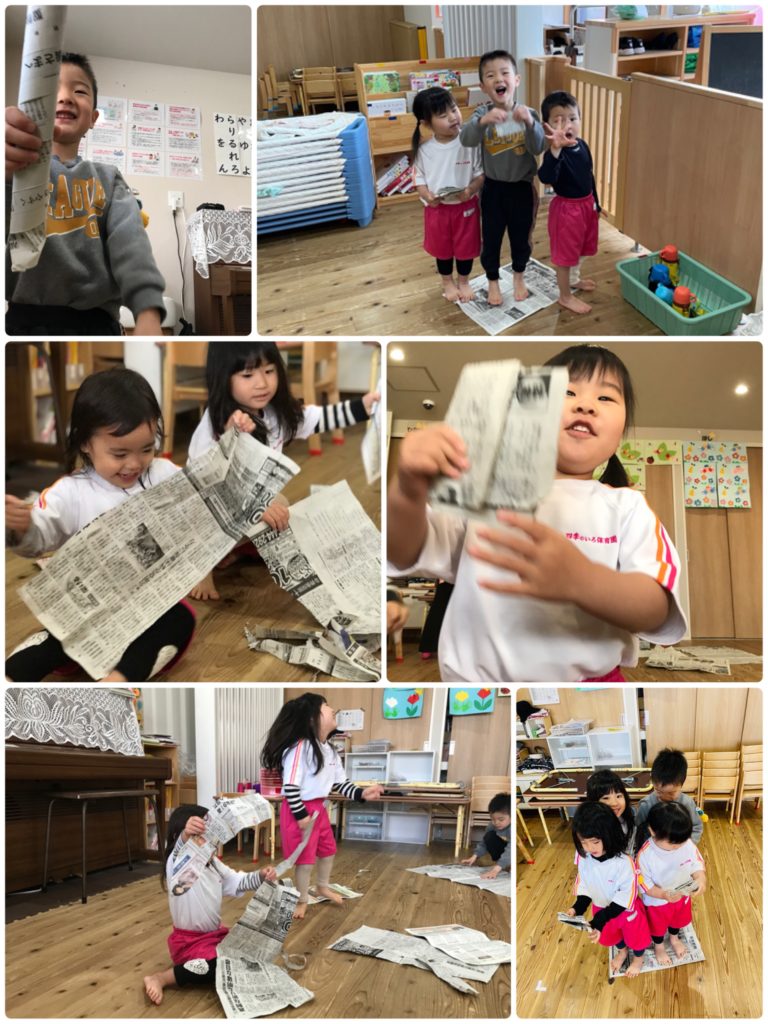 その後は新聞紙を使って自由に遊びました(*^^*)