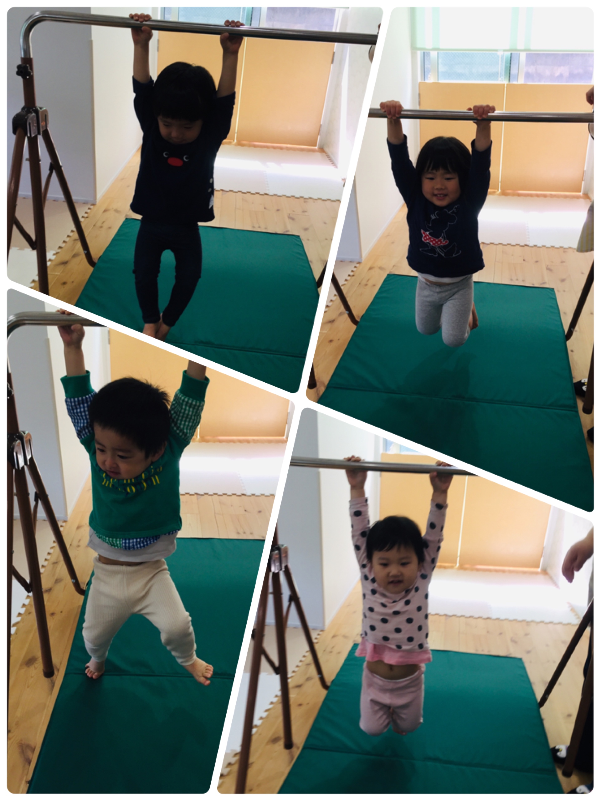 こんにちは、吉塚園です! 今日も元気いっぱいに体を動かしました(^-^) まずは鉄棒! つき組さんも、力強いお兄さん、お姉さんたちに負けませんよ☆ 先生のお手伝いがなくても、自分の腕の力で体を持ち上げることができました! その後は園庭へ♪ ぽかぽか日差しを浴びて、とっても良い気分…* みんなの笑顔が眩しいですね(*^ω^*) また来週も、笑顔をたくさん見せて下さいね!!