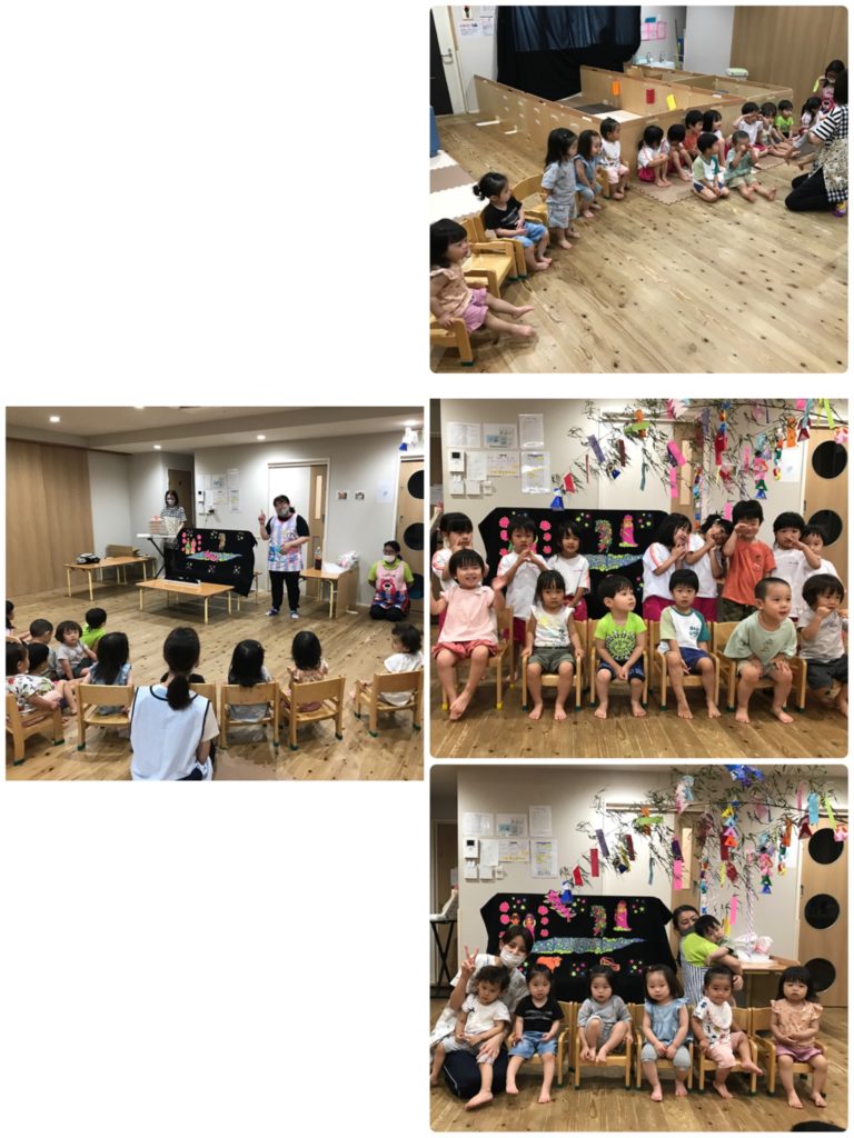 こんにちは♪博多園です! 本日は子供たちも楽しみにしていた七夕会でした☆彡 先生方が準備していてくれたお楽しみや、毎日練習していた七夕のお歌をうたったり♬ 織姫様と彦星のお話もみんな真剣に聞いていましたよ~(#^.^#) 園内でしたが今日はいつもと違う雰囲気で過ごせました☆