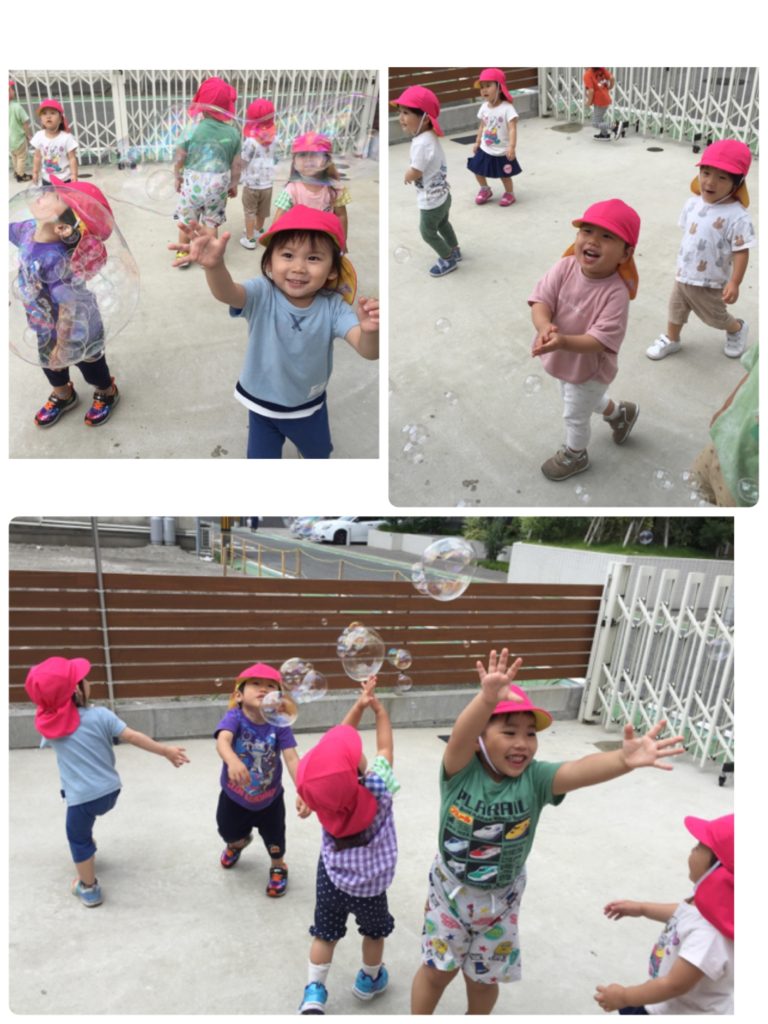 大きなシャボン玉が飛んできた時はみんな大喜びでした(*^^*)