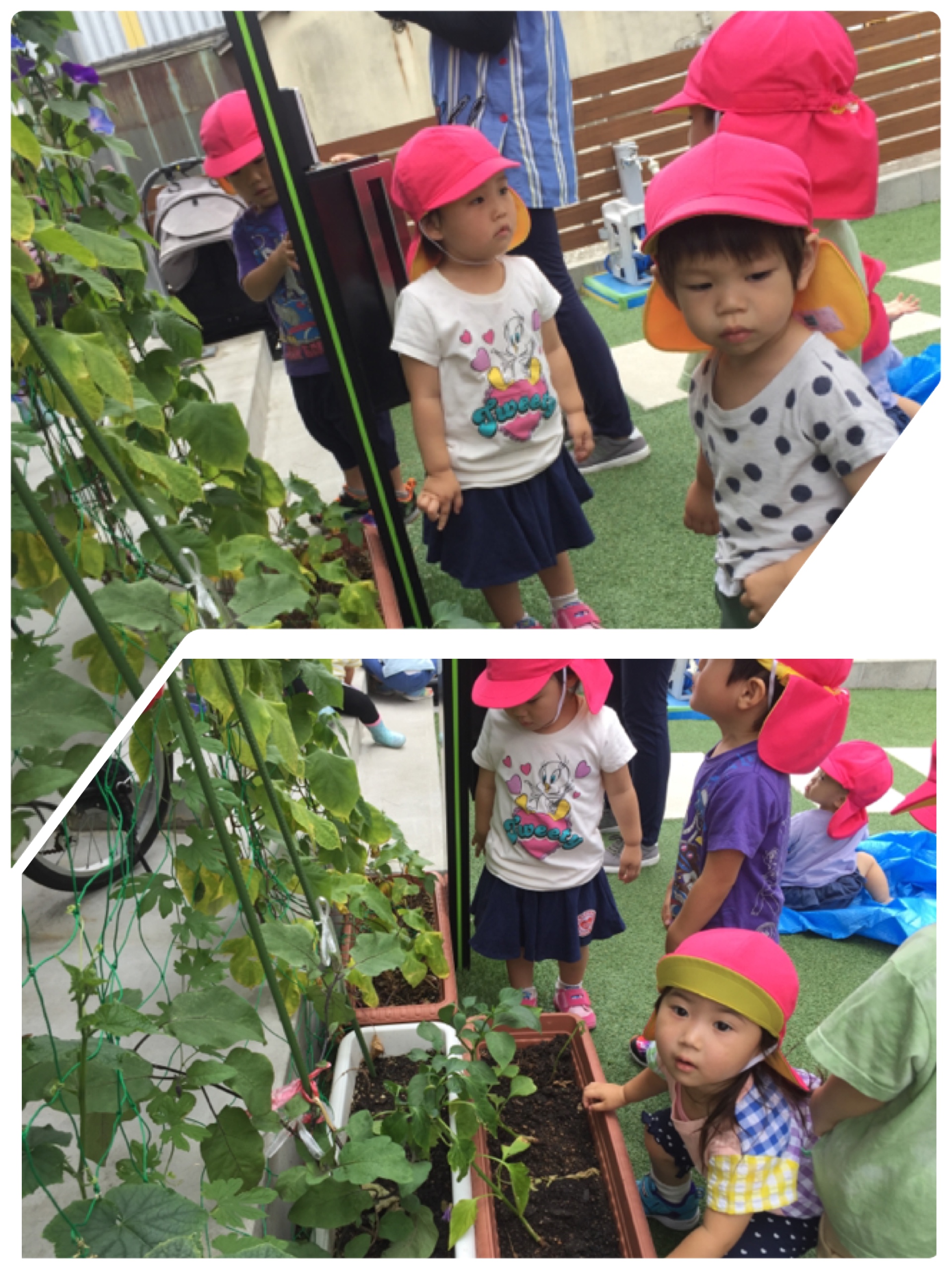 仲良く手を手をつないで遊んだり、あさがおの成長を見たりそれぞれ楽しんでいました☆