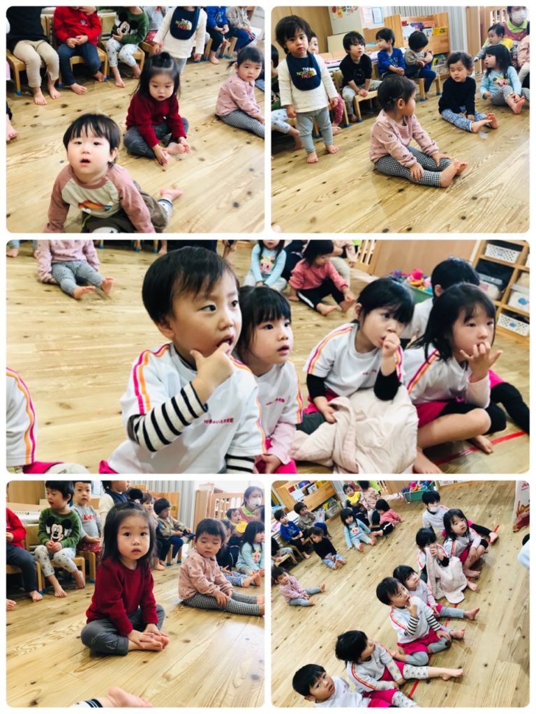 おひさま・ほし・つき組はお部屋で指先や体を使って遊びました♪
