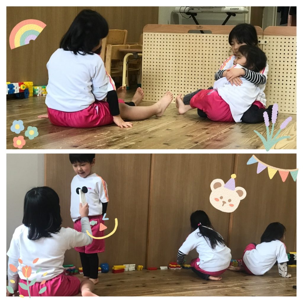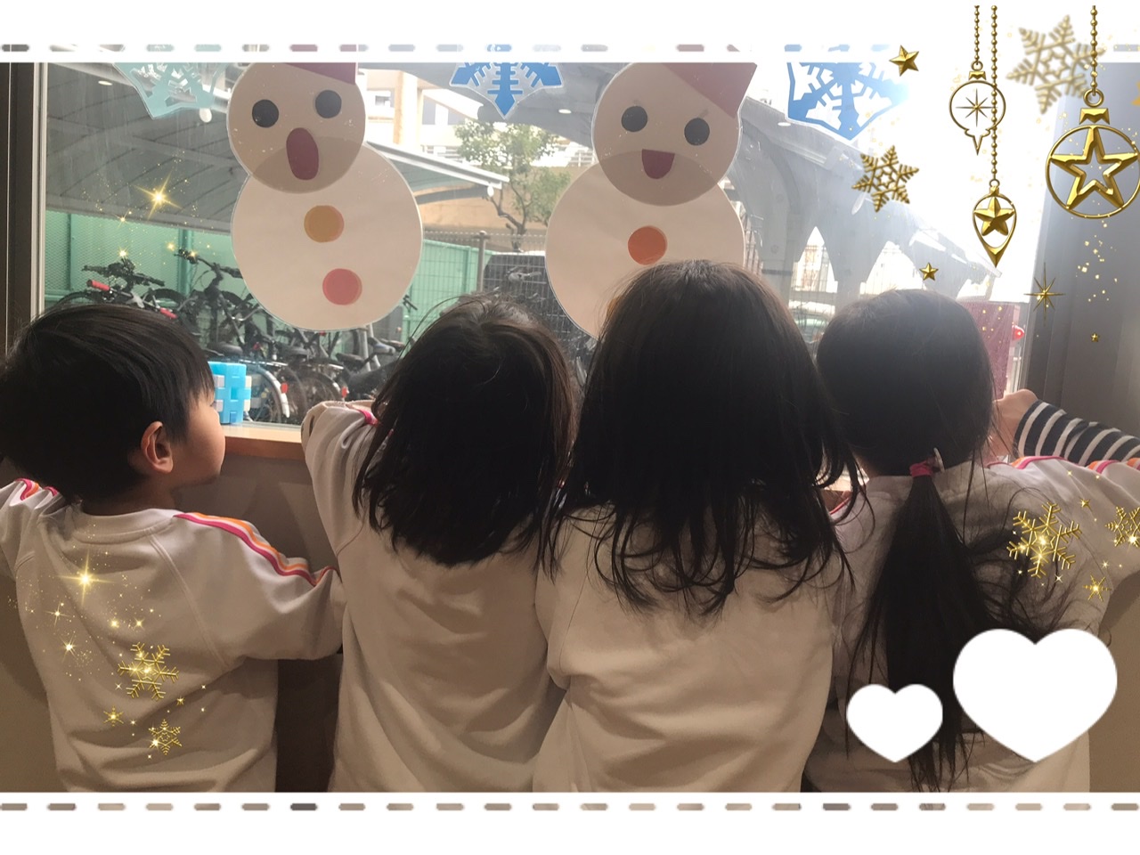 窓の外に降る雪を見て、喜んでいた子ども達❄︎
