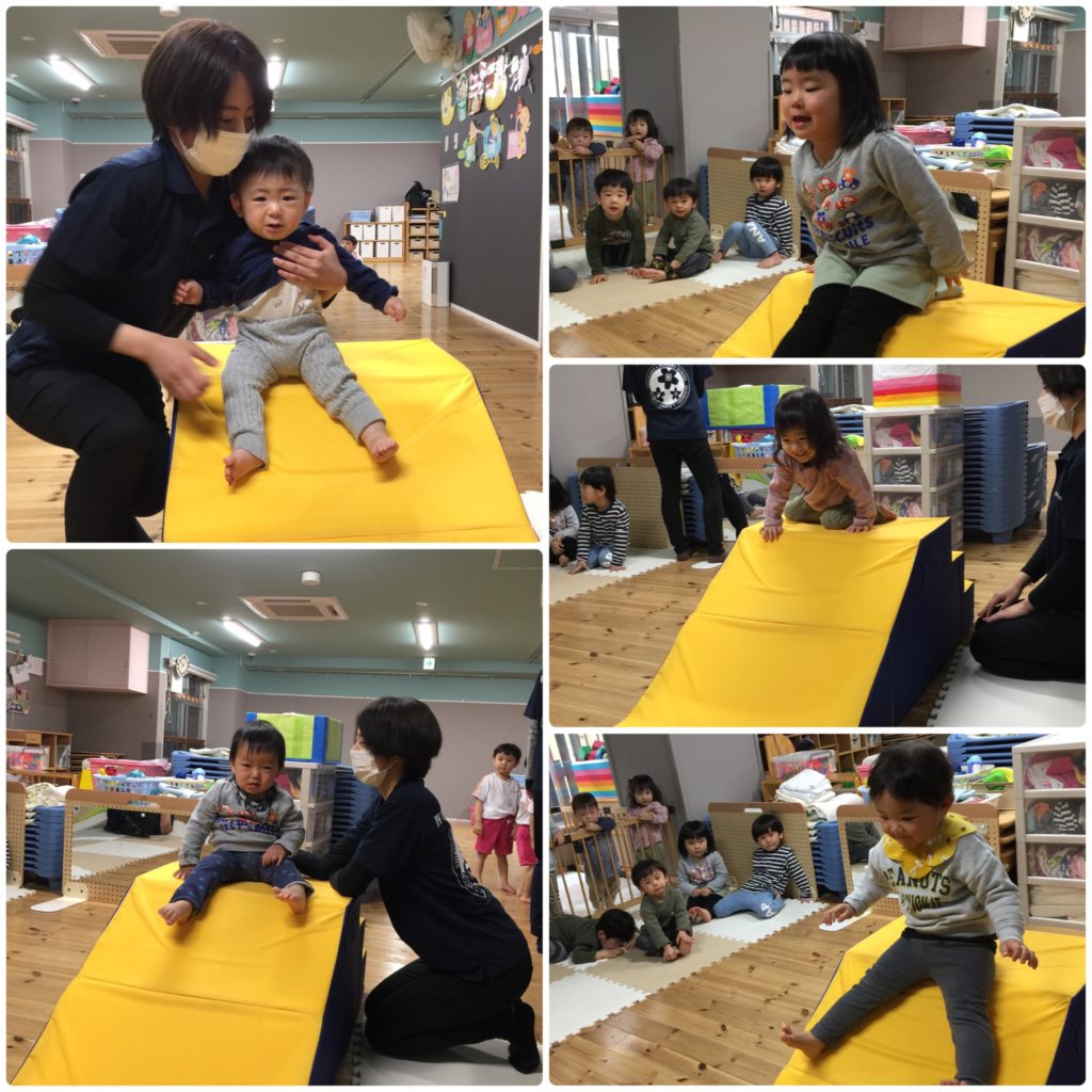 皆さんこんにちは、舞鶴園です 本日は未満児クラスのお友達は運動遊びをしました 滑り台をとても楽しそうに滑る子ども達 小さいお友達も上手に滑ることができました 以上児クラスのお友達はコーディネーション運動♪と英語教室 英語教室ではカラフルな布を垂らしたりと 講師の先生の話をよく聞き楽しんでいました 本日のお給食 【離乳食】 ・鶏ひき肉の煮物 ・ほうれん草のやわらか煮 ・玉ねぎのスープ ・ごはん 【普通食】 ・ささ身チーズフライ ・ほうれん草のソテー ・ウインナーのコンソメスープ ・ごはん