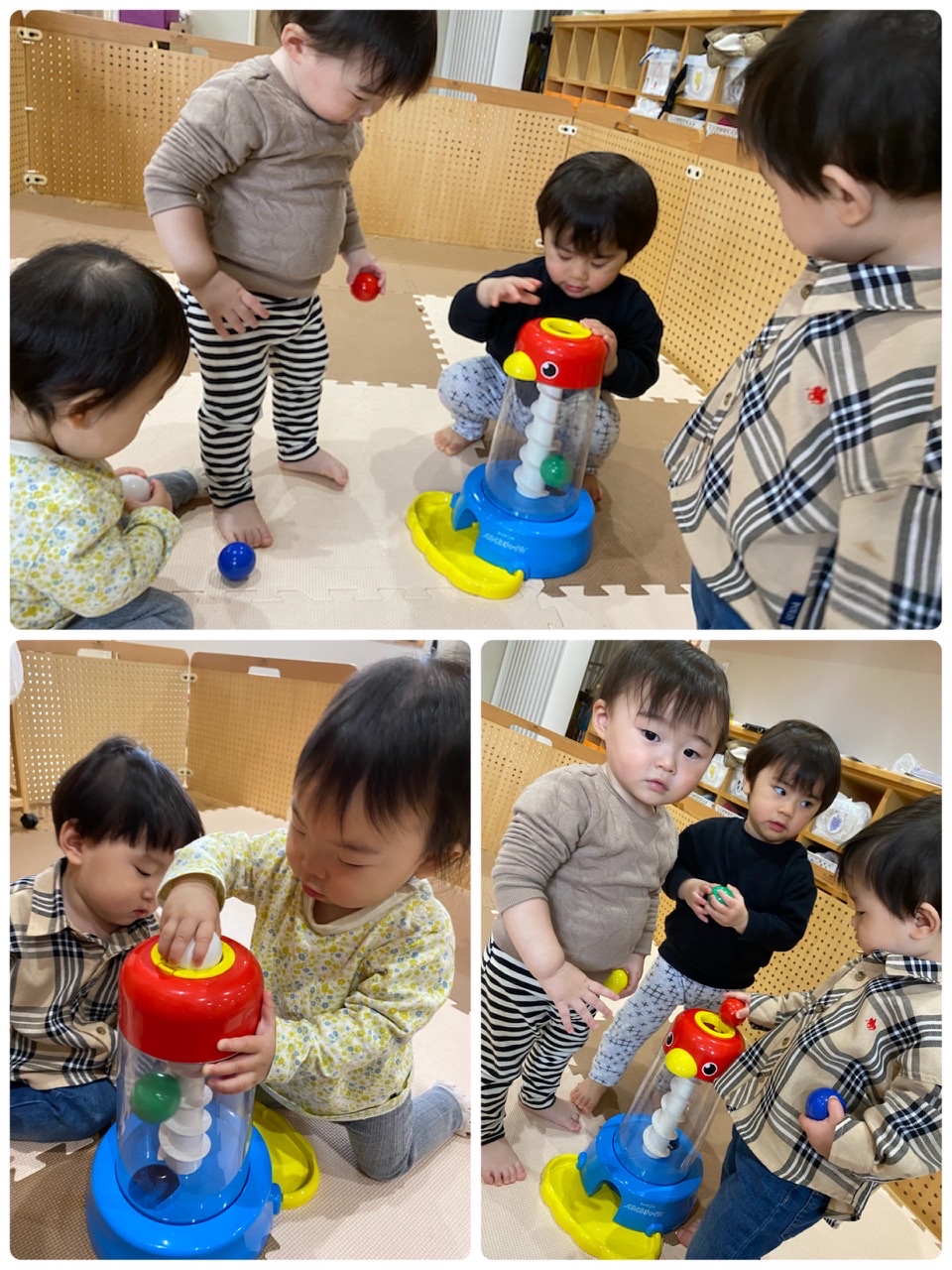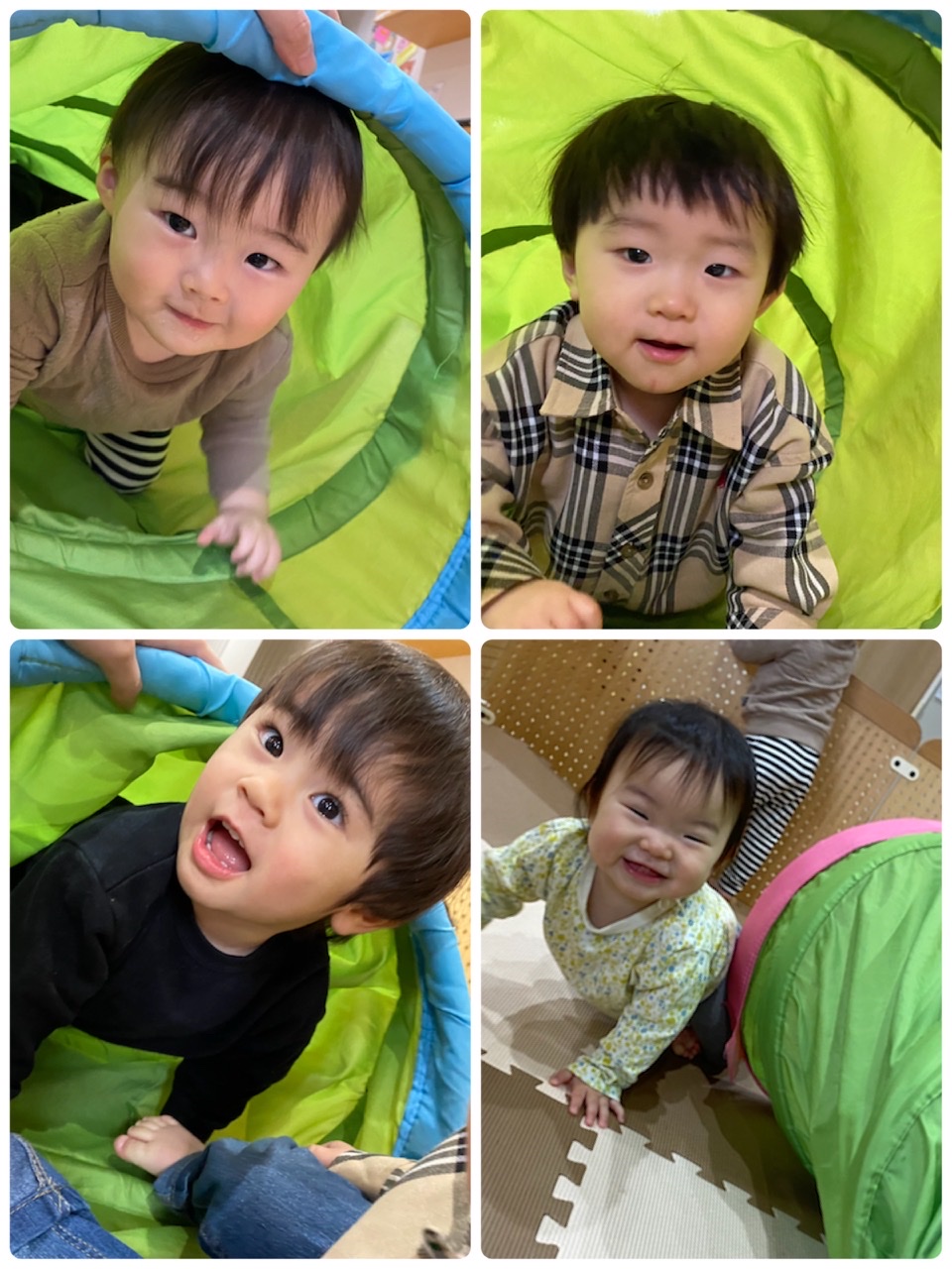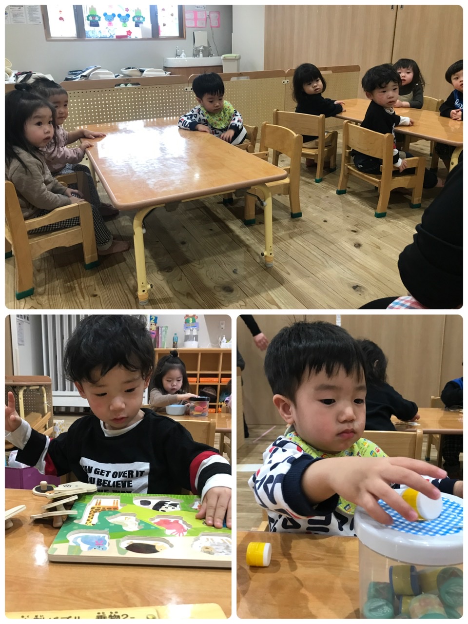 今日も各クラス元気いっぱいに遊んでいましたよ! 色々な音や遊び方を楽しみながら過ごしました!! トンネルからばぁ!(*^^*) 先生が読んでくれた絵本に夢中! 机上遊びも楽しみました! お兄ちゃんお姉ちゃんは、コーディネーション運動を頑張っていましたよ! その後の机上遊びも楽しみました♬