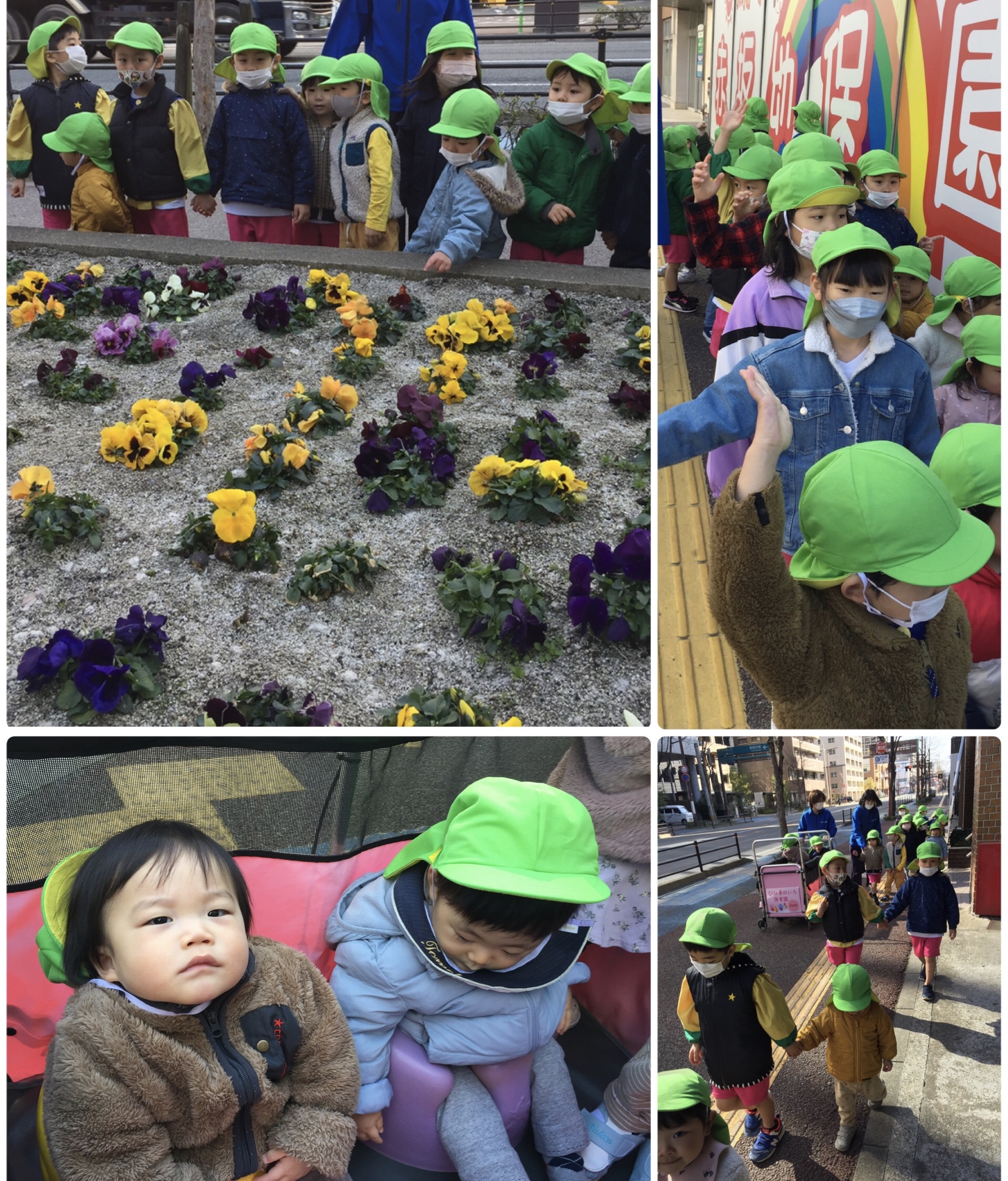 途中でお花を見つけて、むらさき色のお花だね~など声掛けをし