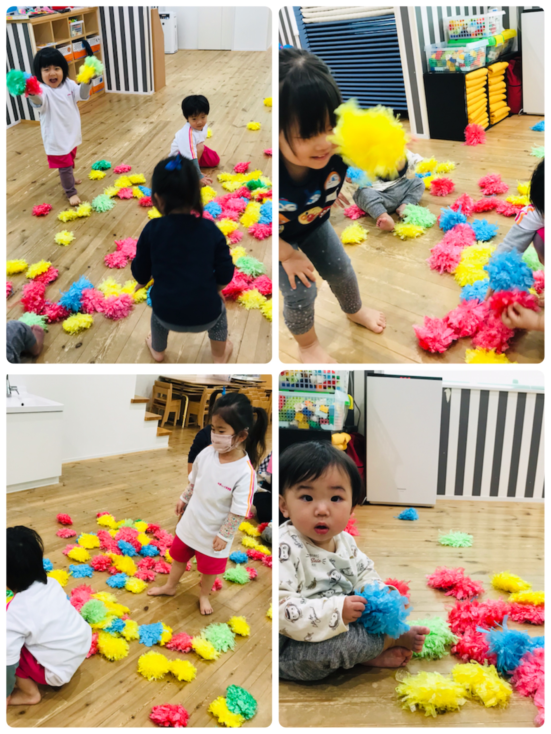 リトミックで身体を動かしたあと、ポンポン玉入れに挑戦!