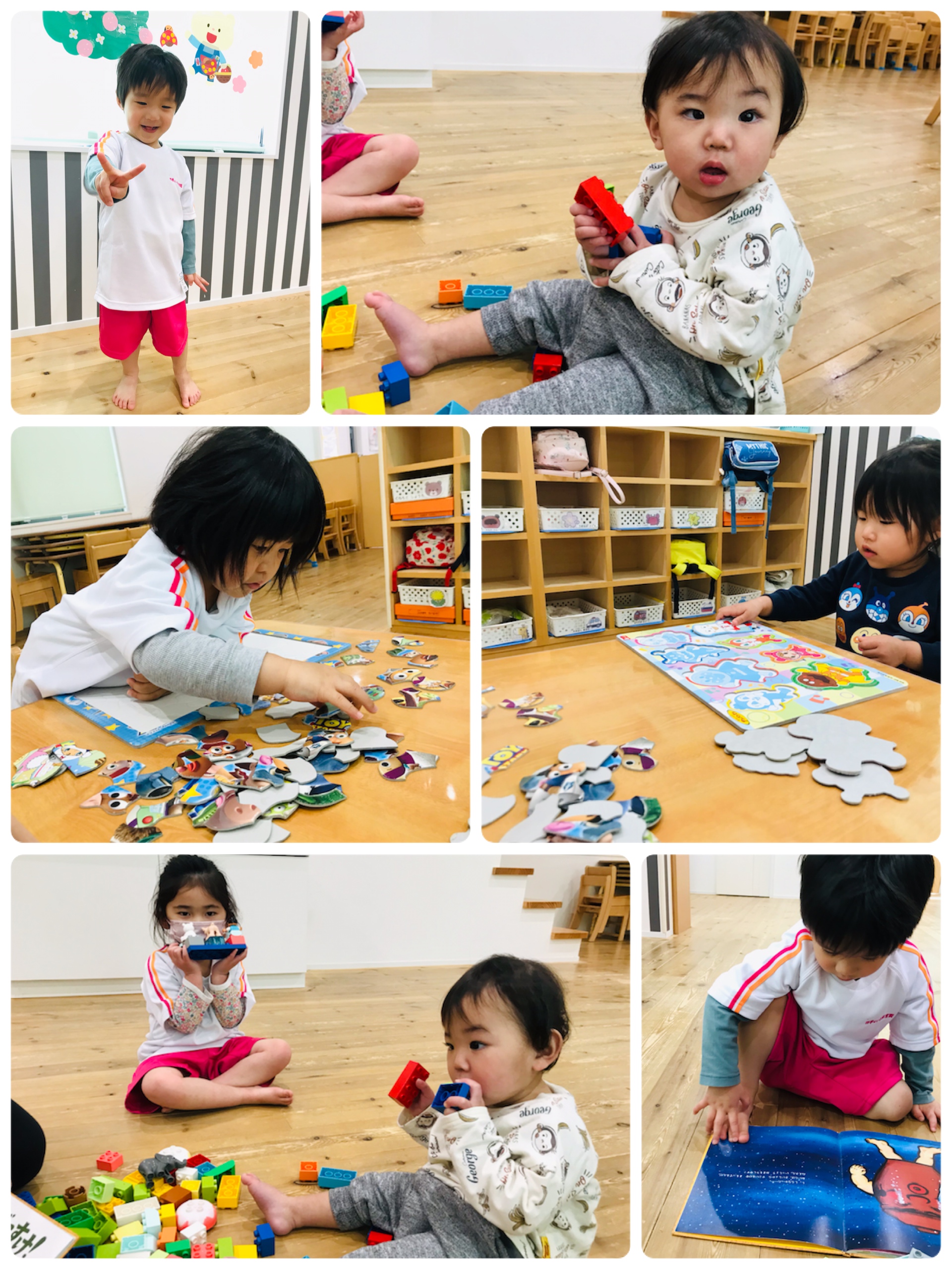 パズルや絵本読みにブロックで遊びました。
