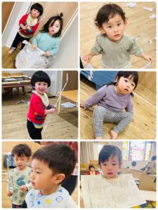 ビリビリ破ってたり、マントにしてみたりと、想像力をフル活用して、遊んでましたよ^_^