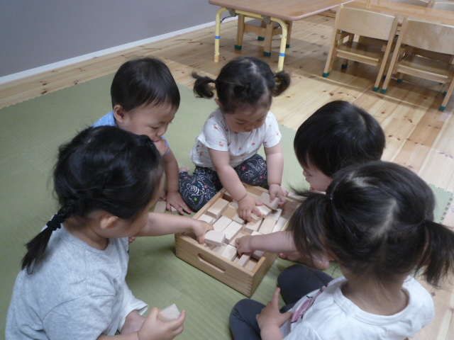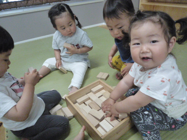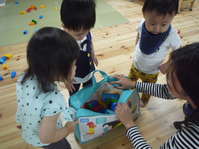 おやつの前にみんなでお片付け。みんな上手にお片付けできたね!