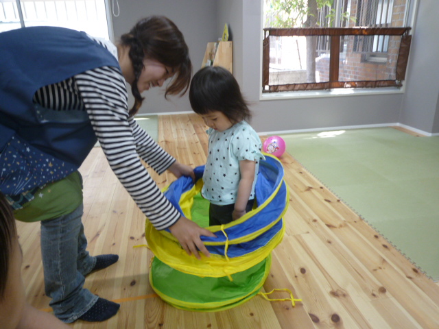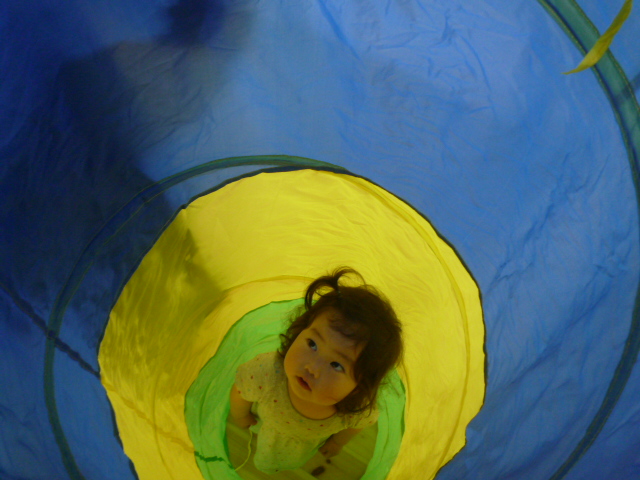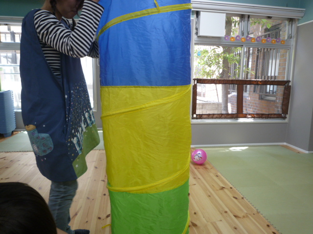 お友だちがトンネルの中に入って、トンネルを伸ばすと…