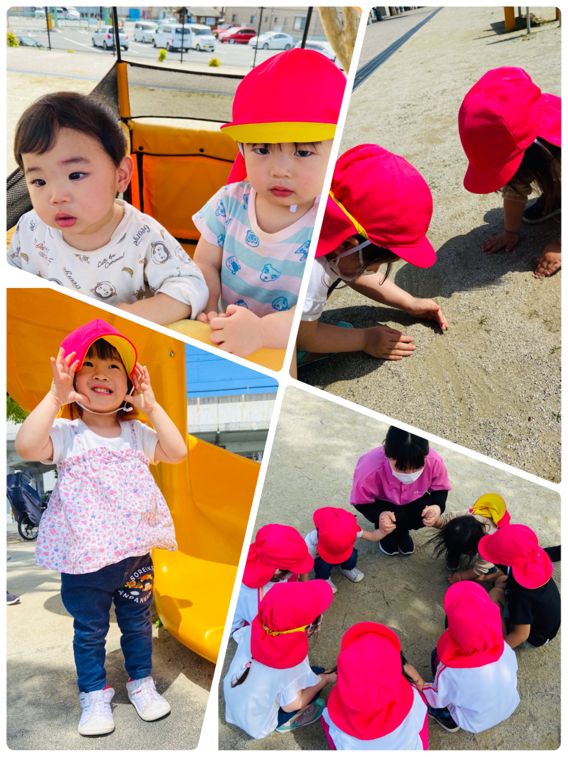 今日は皆で公園に行きました♪ ボールや遊具で遊んで大興奮の子どもたち。大きな滑り台を何度も滑って笑顔が輝いて いましたよ◎ 明日も元気に遊ぼうね!!