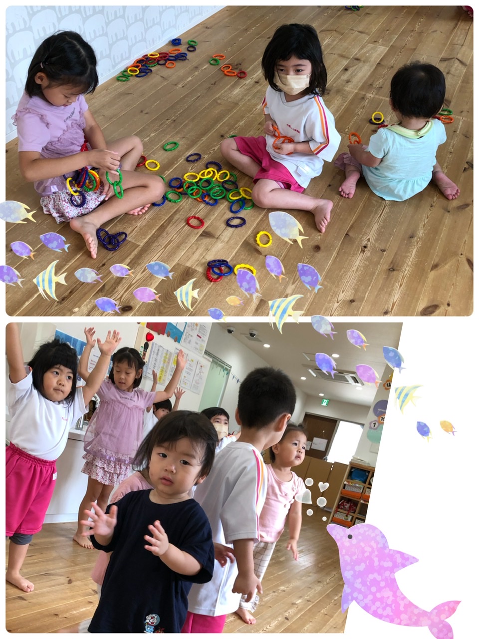 お友達は、元気に登園し沢山体を動かしました。音楽に合わせ体操やリズム遊びを楽しみました(*≧∀≦*)