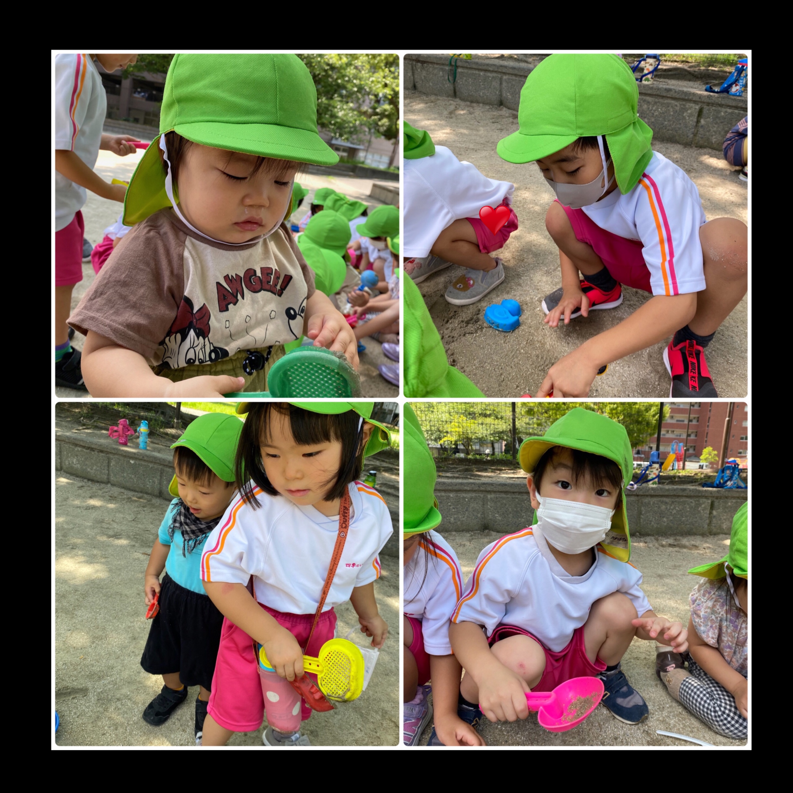 うさぎぐみ、ぱんだぐみ、ぞうぐみさんは園に戻ってきてからシャワーで汗をながしました。