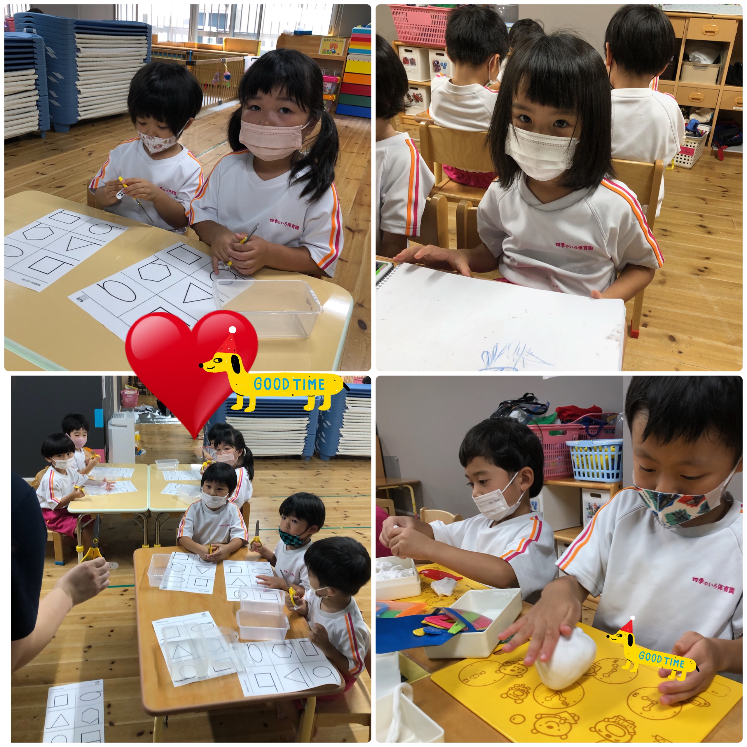 帰ってきてからは、粘土を使って遊んだり、塗り絵をしたりと楽しく過ごしています。