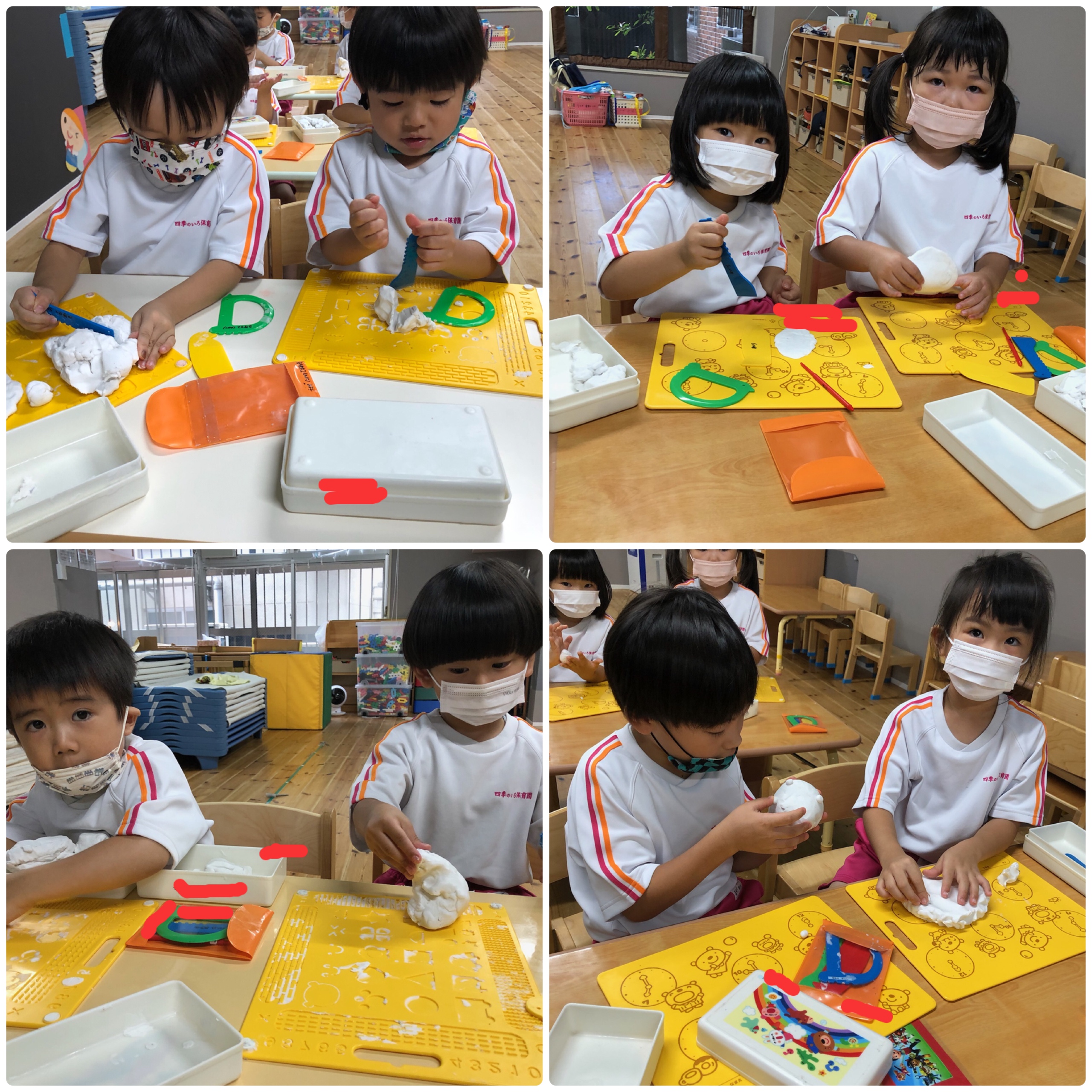 うさぎぐみ、ぱんだぐみ、ぞうぐみさんは粘土遊びをしました。想像力を働かせて、粘土を色んな形にしましたよ。道具の使い方もしっかりと守って安全に取り組んでいました。