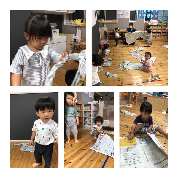 新聞をびりびりしてみたり、くるくるしてみたり♪