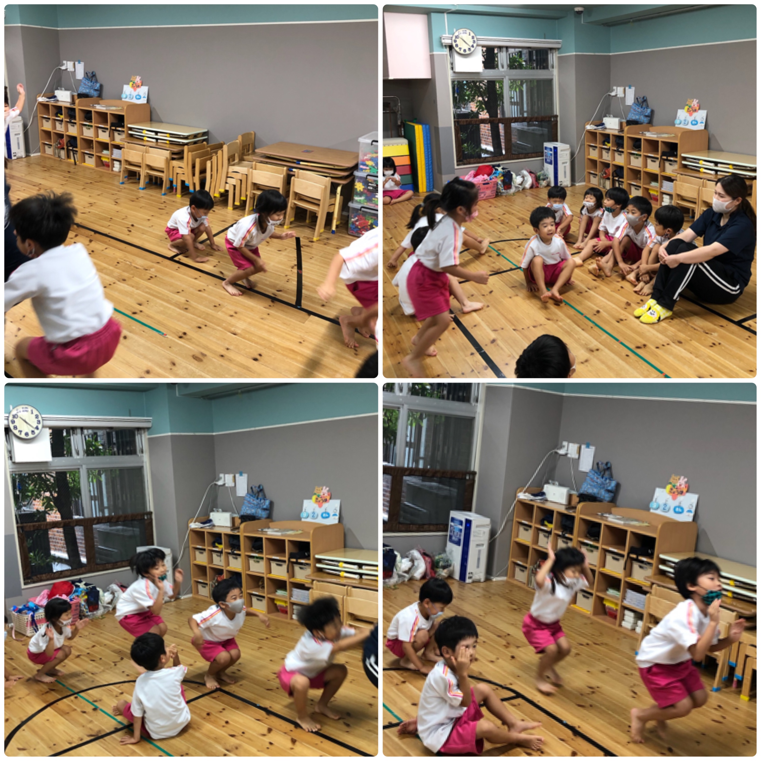 今日もお天気が良くなかったのでお散歩には行けませんでしたが、室内でダンスをしたり、小さいお友達は運動会に向けての練習をしたりと工夫をしながら過ごしています。