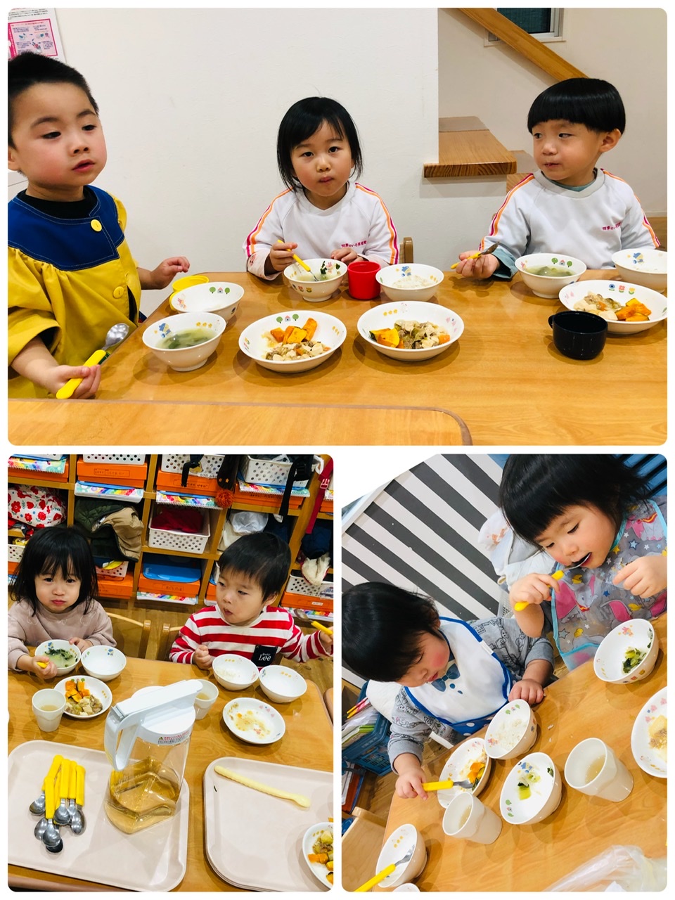 先生たちとも、ポンポンを投げ合って戦っていました!!たくさん遊んだ後はご飯もモリモリ食べて元気一杯でしたよ!!