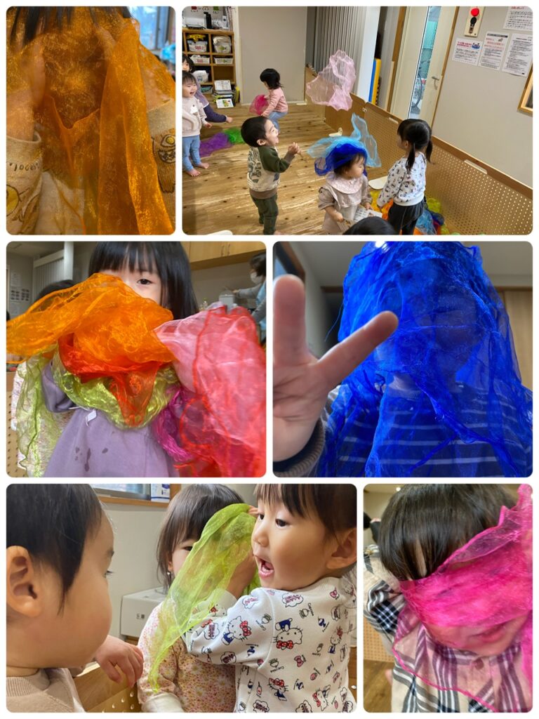 小さいお友達も色とりどりの布をかぶって可愛くポーズ( *´艸`)