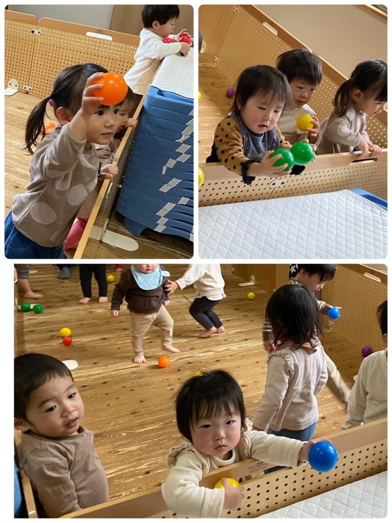 その後はカラーボールで遊びました。沢山のボールに大喜びの子ども達でした。