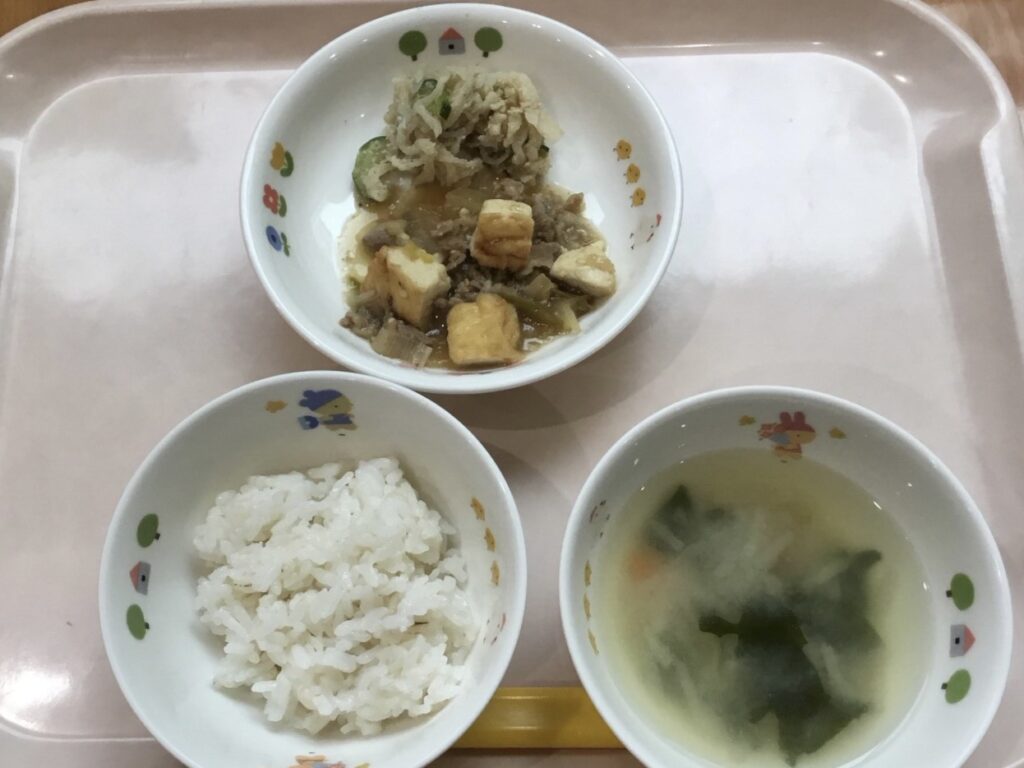 麦ごはん みそ汁 厚揚げの中華煮 切り干し大根のサラダ です!