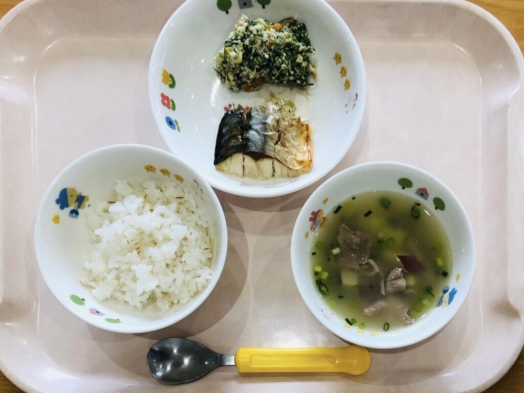 麦ごはん 豚汁 さばの塩焼き ほうれん草の白あえ です!