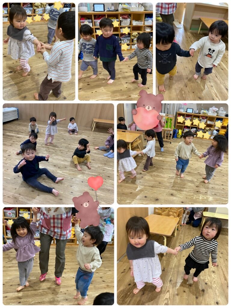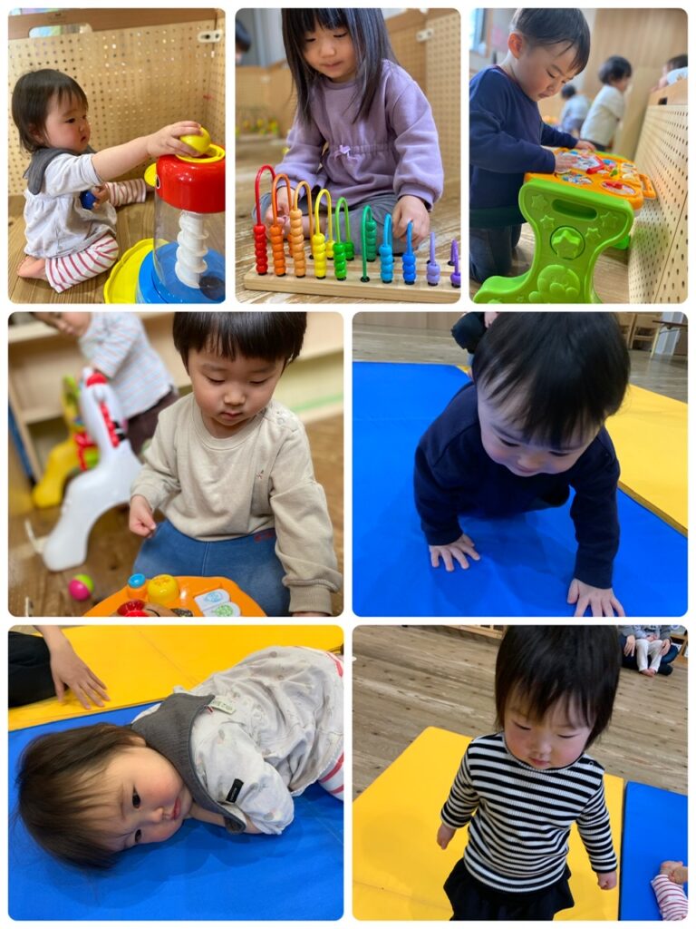 おひさま、ほし組さんは、リズム遊びをした後、マットや指先遊びをしました!!お友達と手を繋いで踊ったり、お部屋を歩き回ったりしてとてもうれしそうでしたよ♡指先遊びも自分の好きなおもちゃで夢中になって遊んでいましたよ☆