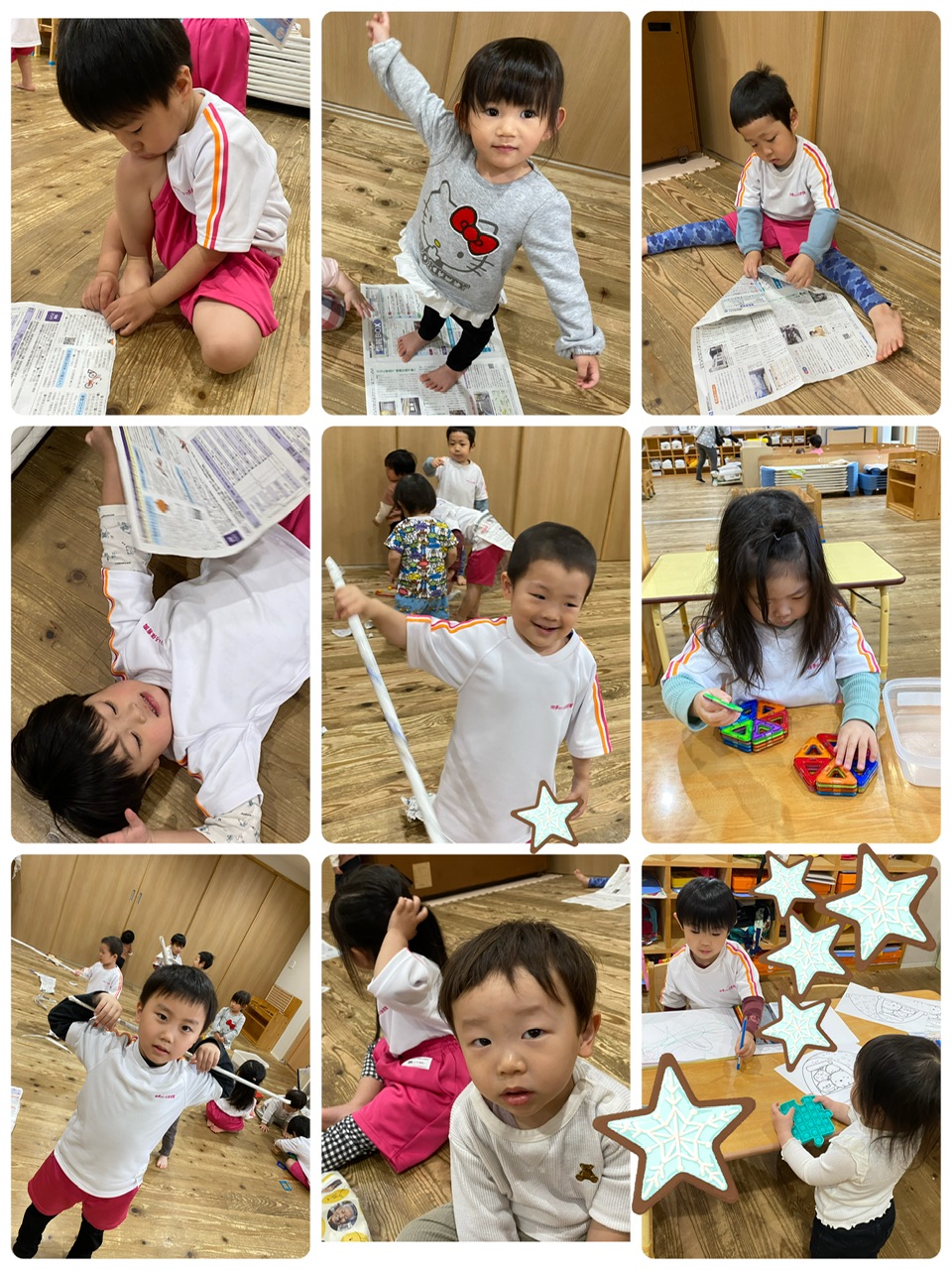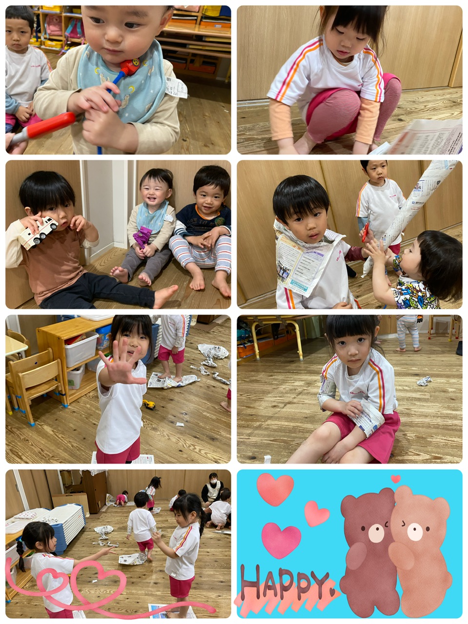 好きな玩具で遊んだり、新聞紙で遊んだり、お絵描きもしましたよ。