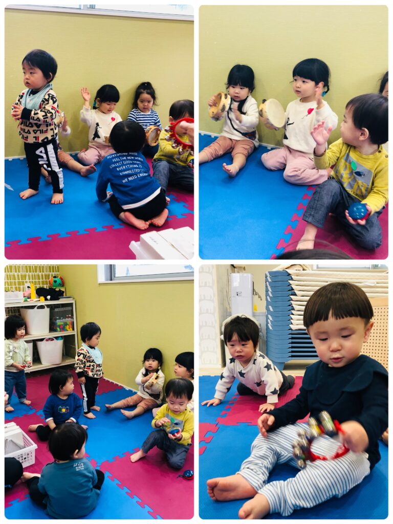 タンバリンや鈴、カスタネットを使って楽しむ姿が見られました。