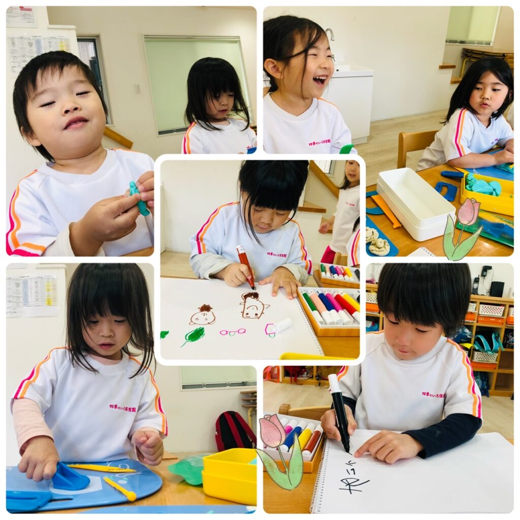 以上児さんは室内で塗り絵をしたり、粘土をして遊びました🎵