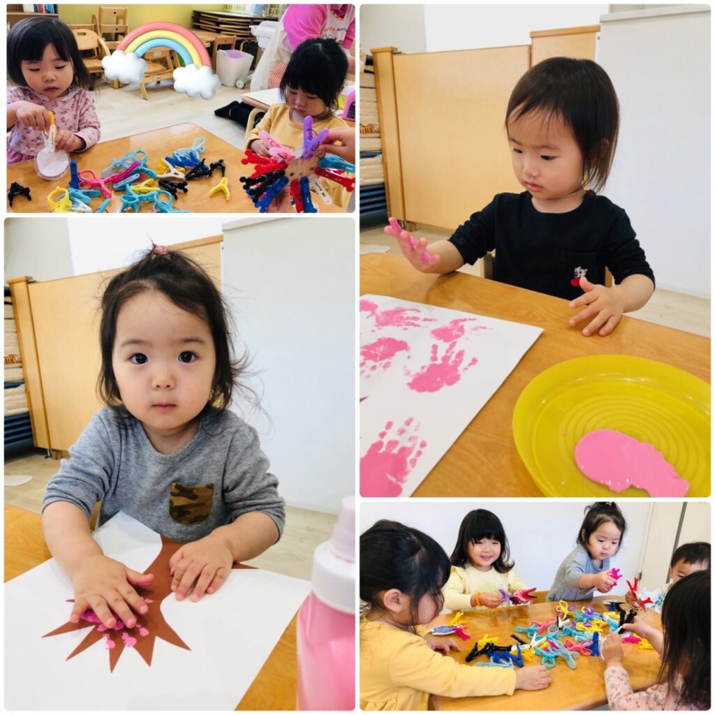 制作で手に絵具を付けてぺたぺたしたり…(*´ω`*)
