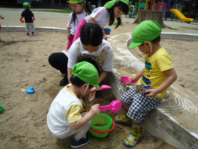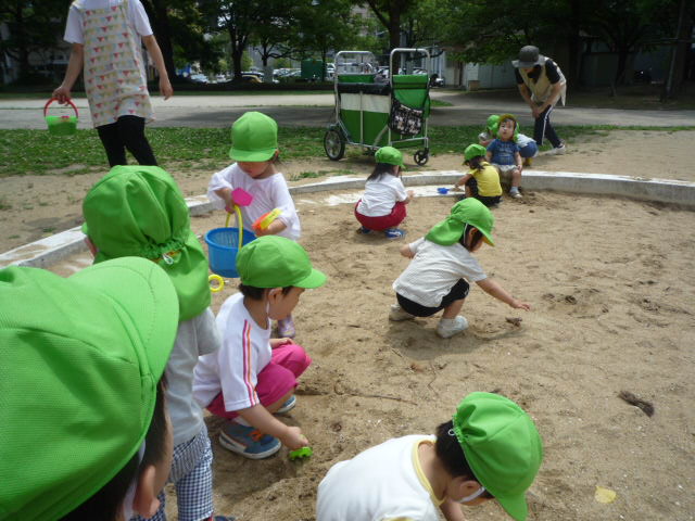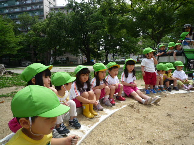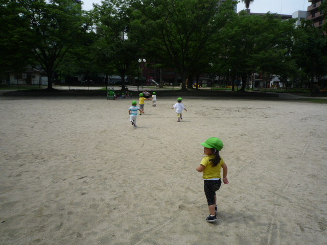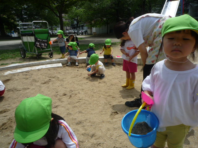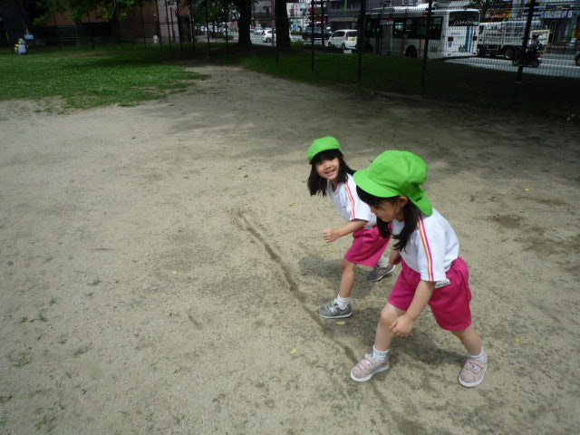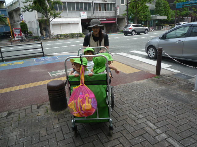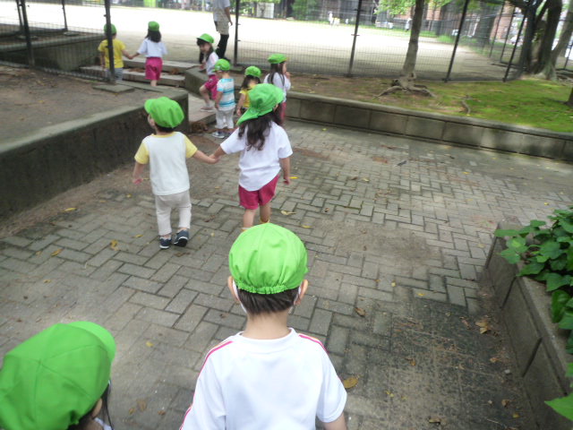 お兄さんと手を繋ぎ♥反対側にはしっかり保育士と