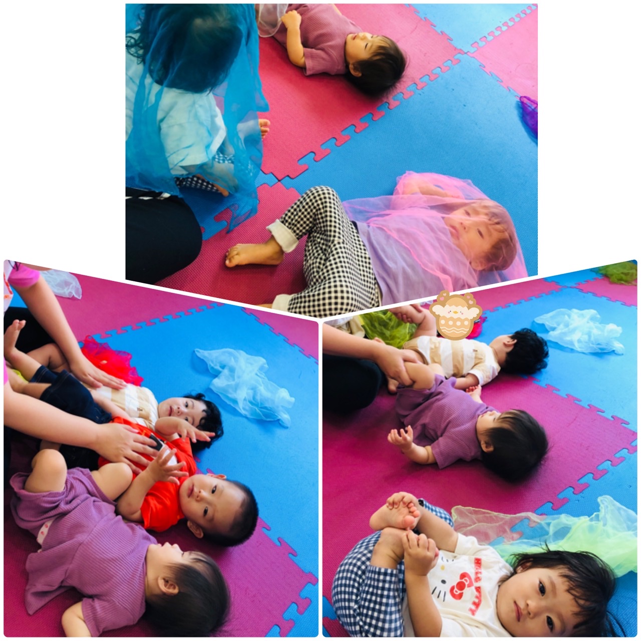 小さいお友達はお部屋でお絵描きやシール貼り、スカーフ遊びなどして楽しく過ごしました☆彡